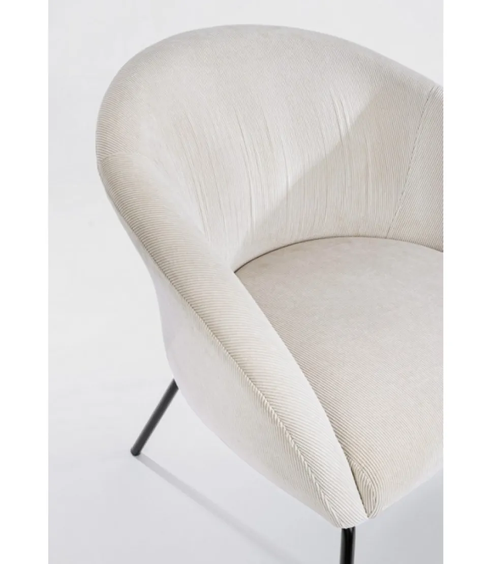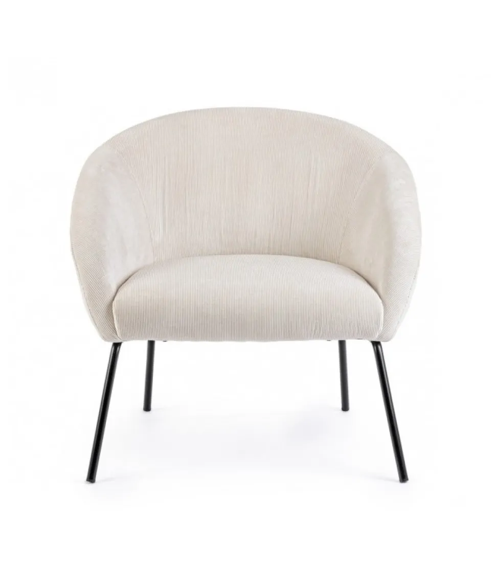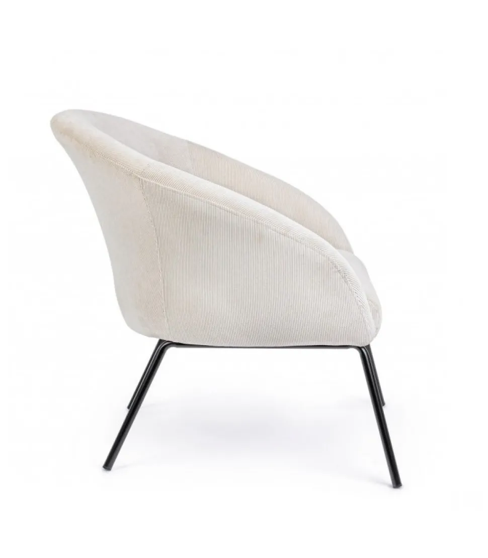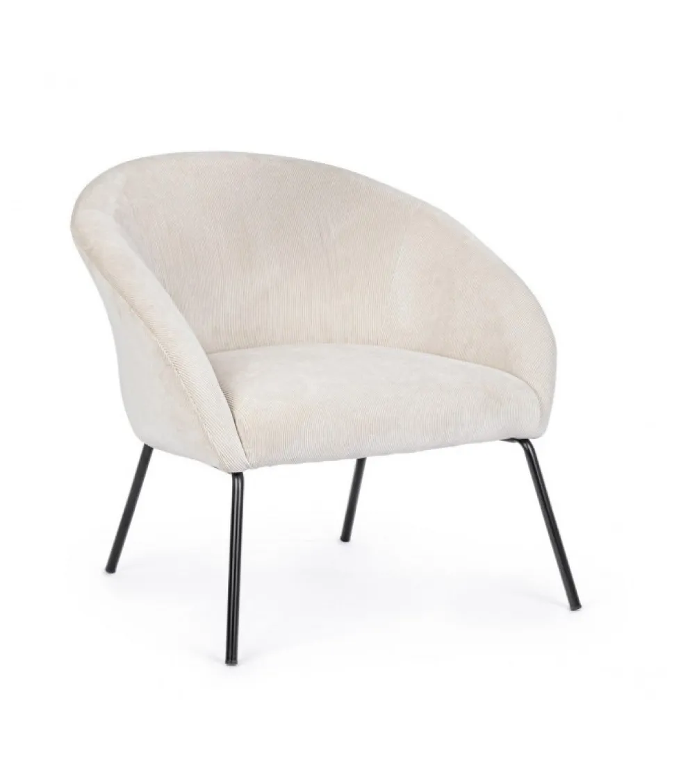 Poltrona Aiko Velvet Bianco Gambe In Acciaio Verniciato A Polvere. Imbottitura In Schiuma Poliuretanica Densita’ 22Kg/M3.Rivestimento In Velluto A Costa Larga (100% Poliestere). Gambe Da Assemblare. – Dimensioni In Cm. 80 (L.) 76 (P.) 75 ( H.) 45 ( H1) – 60 ( H2)