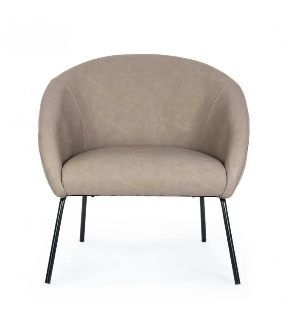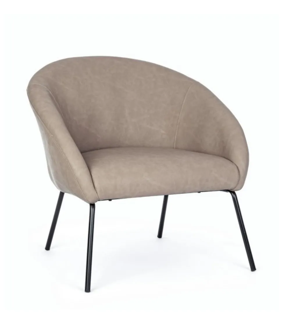Poltrona Aiko Pu Tortora Gambe In Acciaio Verniciato A Polvere. Imbottitura In Schiuma Poliuretanica Densita’ 22Kg/M3.Rivestimento In Similpelle. Gambe Da Assemblare. – Dimensioni In Cm. 80 (L.) 76 (P.) 75 ( H.) 45 ( H1) – 60 ( H2)