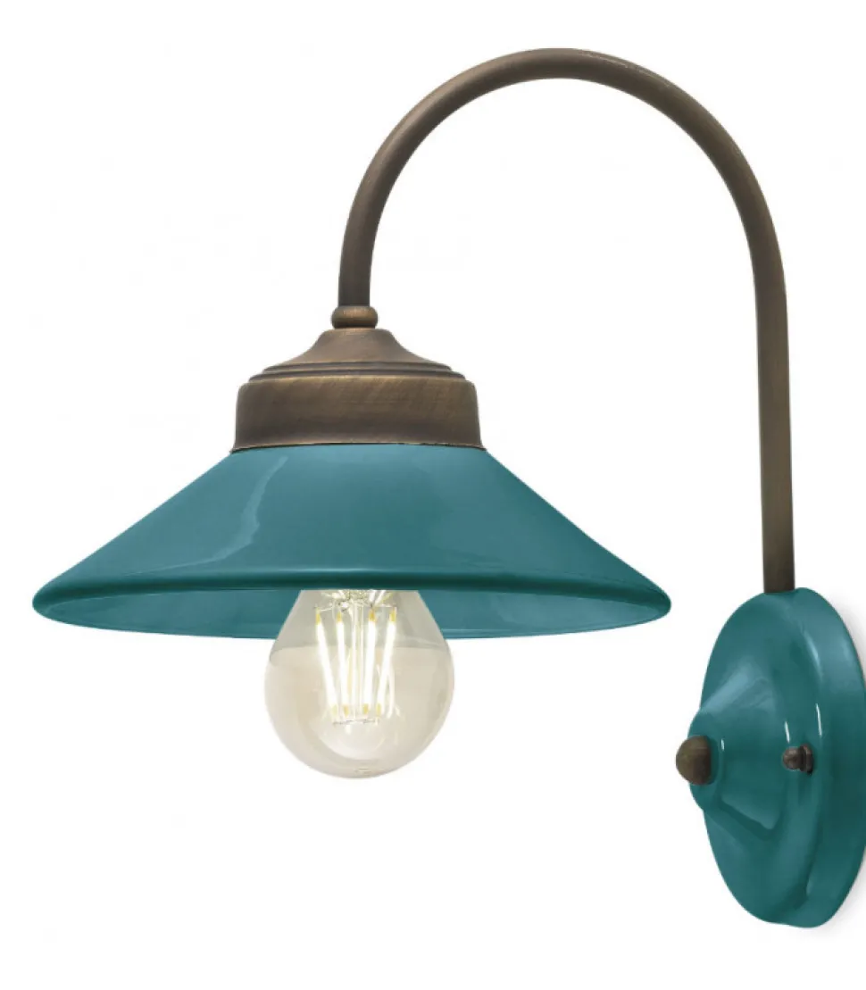 Applique Riga Di Ferroluce, Paralume E Rosetta In Ceramica Con Colori Abbinati.