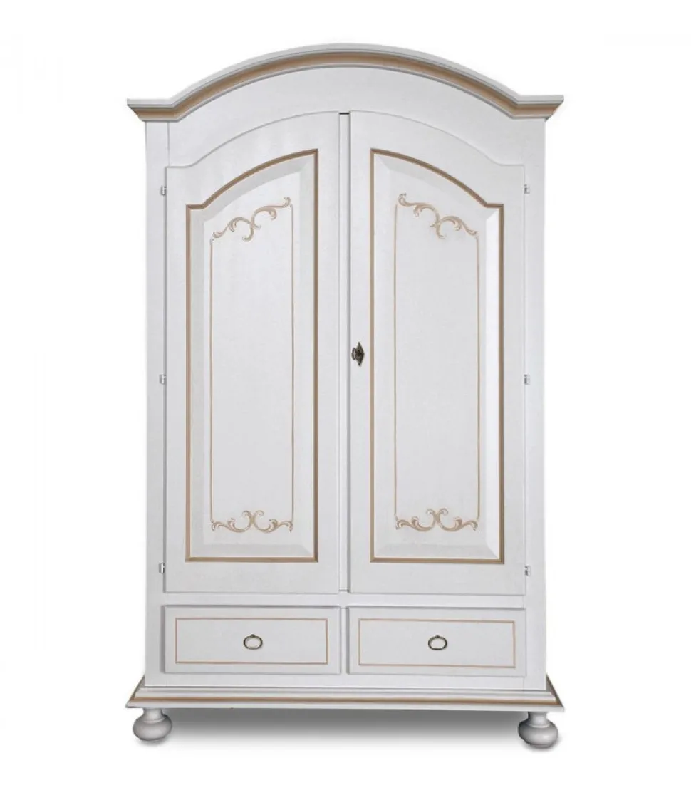 Armadio Colombina Due Ante Battenti Con Chiusura A Serratura E Due Cassetti Esterni, In Legno Massello Laccato E Decorato A Mano Con Preziosi Filetti Colore Nocciola.