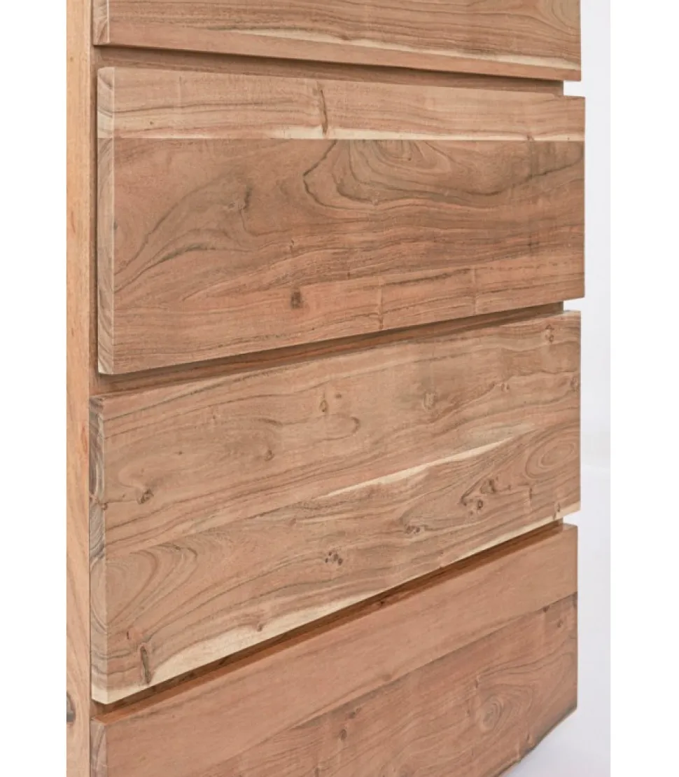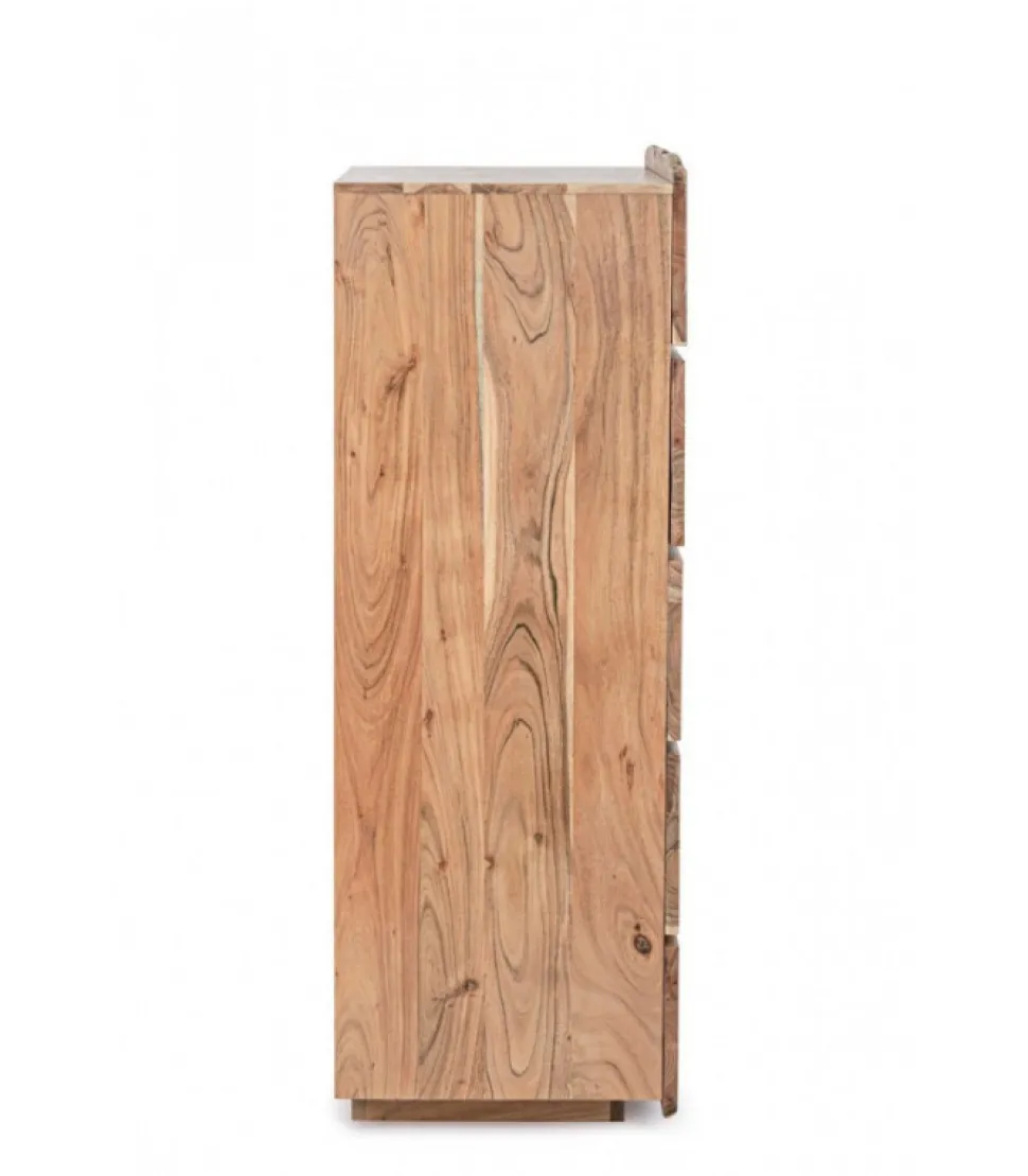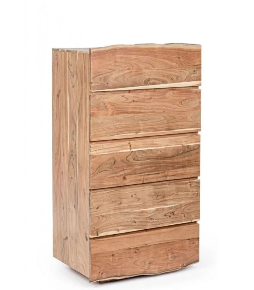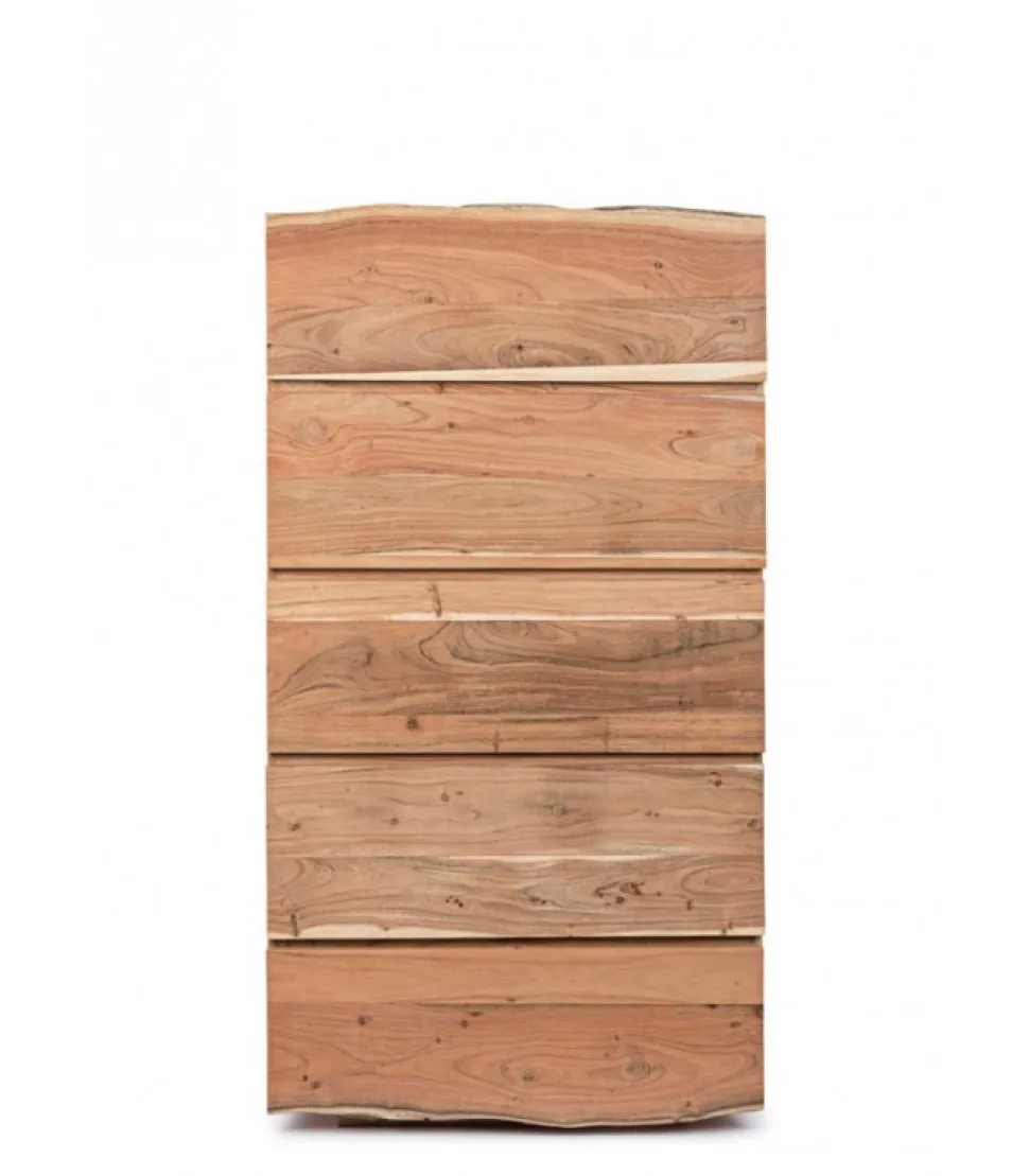 Cassettiera 5C Aron Legno Di Acacia. Finitura A Base Di Vernice Poliuretanica. Frontale Cassetto Con Bordi Irregolari (Effetto Legno Vivo). Essendo Lavorato A Mano, Le Forme E Le Misure Del Legno Sono Solo Indicative. Tutti I Prodotti Saranno Diversi L’Uno Dall’Altro. – Dimensioni In Cm. 70 (L.) 45 (P.) 130 H
