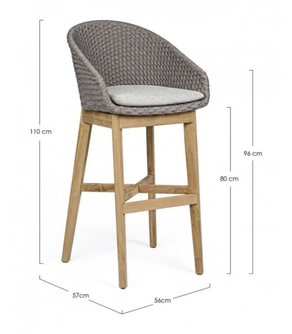 Sgabello Bar C-C Coachella Stone Seduta Con Struttura In Alluminio Verniciata A Polvere (Poliestere). Intreccio In Corda Olefin (100% Polipropilene). Cuscino Seduta Sfoderabile Con Tessuto Sunproof Olefin (100% Polipropilene). Gambe In Teak – Svlk (Legno Certificato Proveniente Da Foreste Sostenibili). Viteria In Acciaio Galvanizzato. Gambe Da Assemblare. – Dimensioni In Cm. 56 (L.) 57 (P.) 110 ( H.) 80 ( H1) – 96 ( H2)