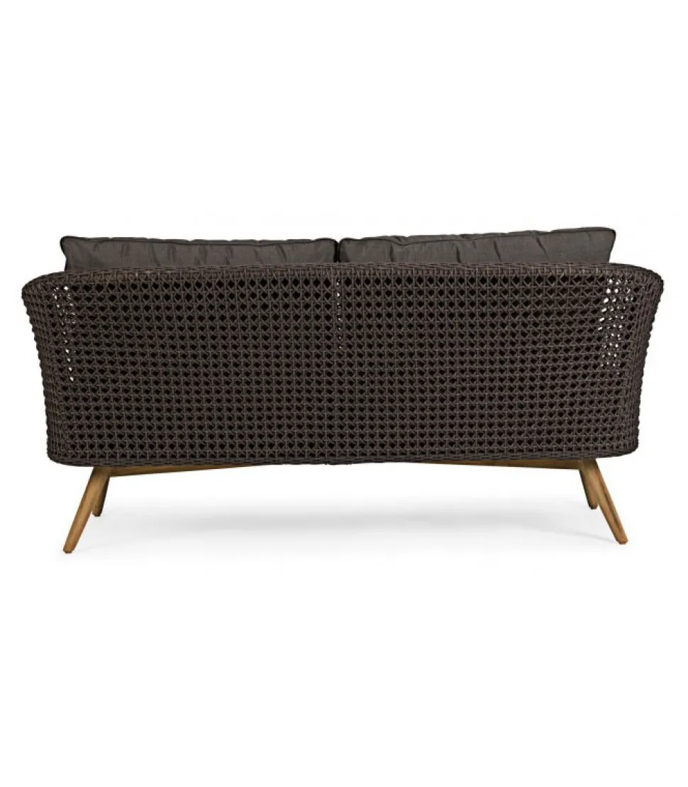 Divano 2-3P C-C Ninfa Dark Struttura In Alluminio Verniciata A Polvere (Poliestere). Gambe In Teak – Svlk (Legno Certificato Proveniente Da Foreste Sostenibili) Con Finitura Rustica. Intreccio Per Esterno In Corda (Polipropilene), Idrorepellente E Resistente Ai Raggi Uv.Cuscini Sfoderabili Con Tessuto Sunbrella (100% Acrilico), Idrorepellenti E Resistenti Ai Raggi Uv. Imbottitura Per Esterno Quick Dry Foam (Antiumidita’). – Dimensioni In Cm. 160 (L.) 81.5 (P.) 74 H – 42 ( H1) 62 H2