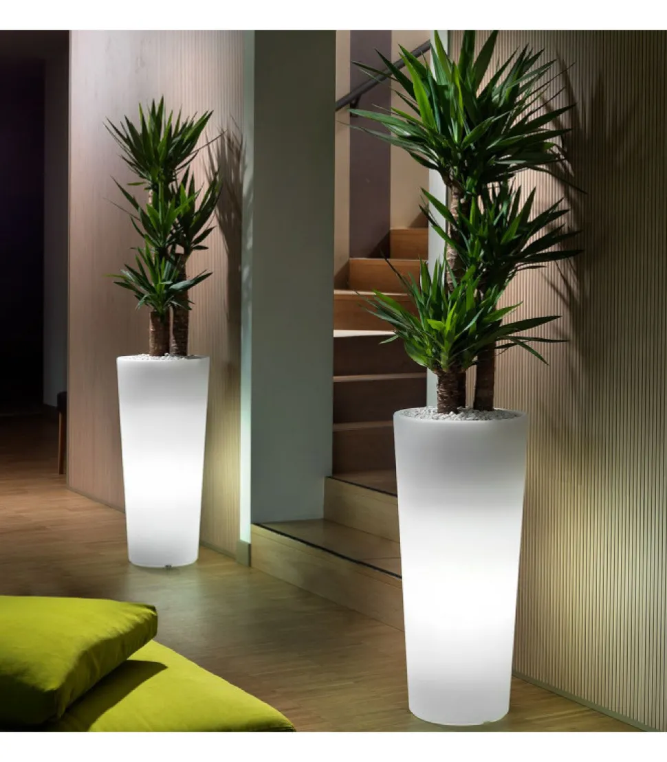 Il Cache-Pot Genesis Rotondo Alto Produce Una Luce Ideale Per Illuminare Con Eleganza Spazi Indoor E Outdoor.