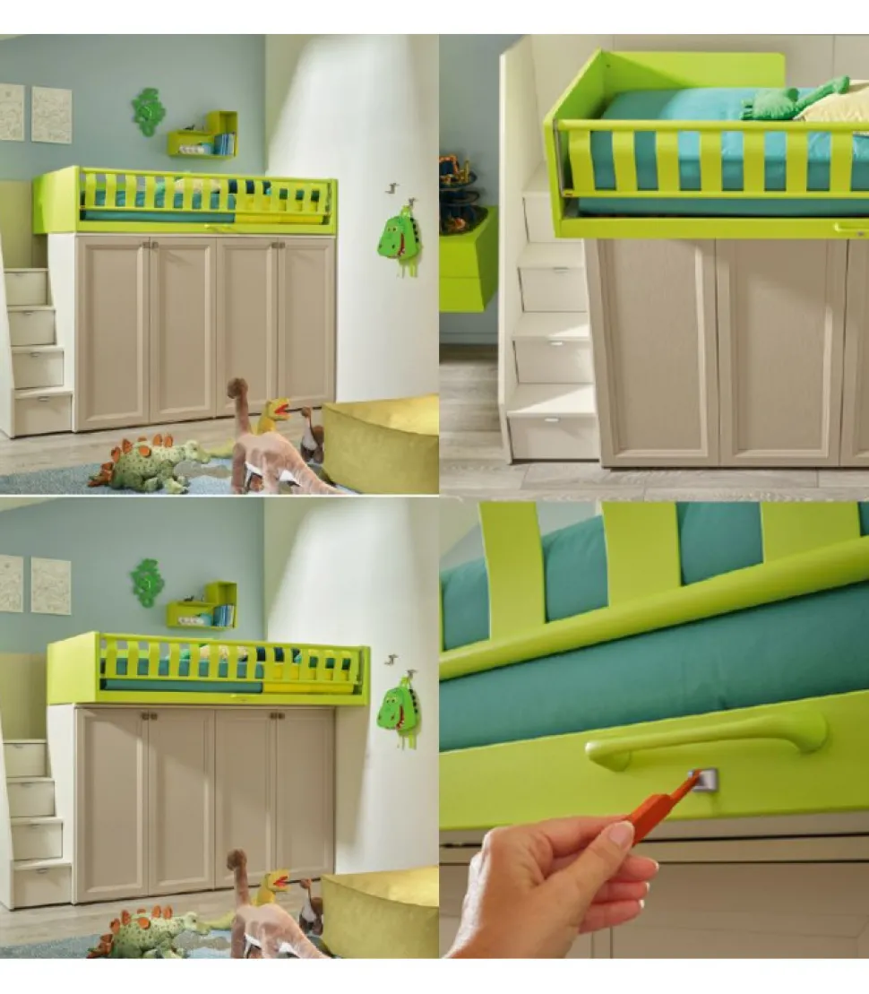 Letto Con Pianale Scorrevole Salva Spazio: Il Letto E Dotato Di Un Pratico Pianale Scorrevole Che Ottimizza Lo Spazio, Consentendo Di Sfruttare Al Meglio La Stanza. Ideale Per Ospitare Amici O Per Creare Un’Area Gioco Durante Il Giorno.
