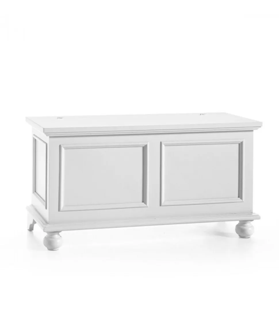 Cassapanca Este L In Legno Massello Laccato Bianco Opaco Con Piedi A Cipolla.