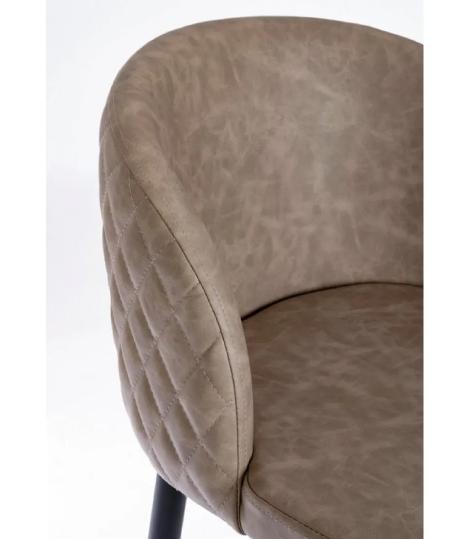 Sgabello Bar Chris Pu Tortora Gambe In Acciaio Verniciato A Polvere. Struttura In Acciaio E Compensato. Imbottitura In Schiuma Poliuretanica. Seduta Rivestita In Similpelle (Pu). Schienale Con Lavorazione Matelasse’. Gambe Da Assemblare. – Dimensioni In Cm. 47 (L.) 52 (P.) 105 ( H.) 77,5 ( H1)