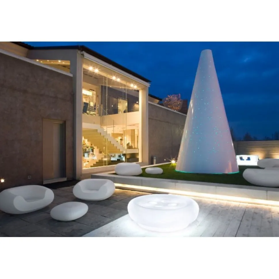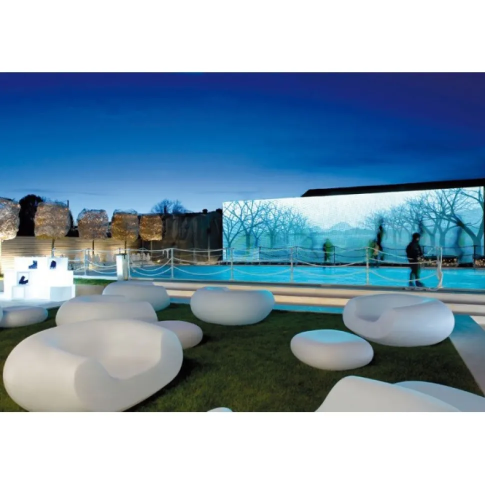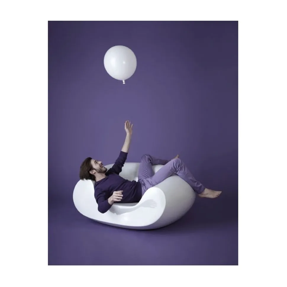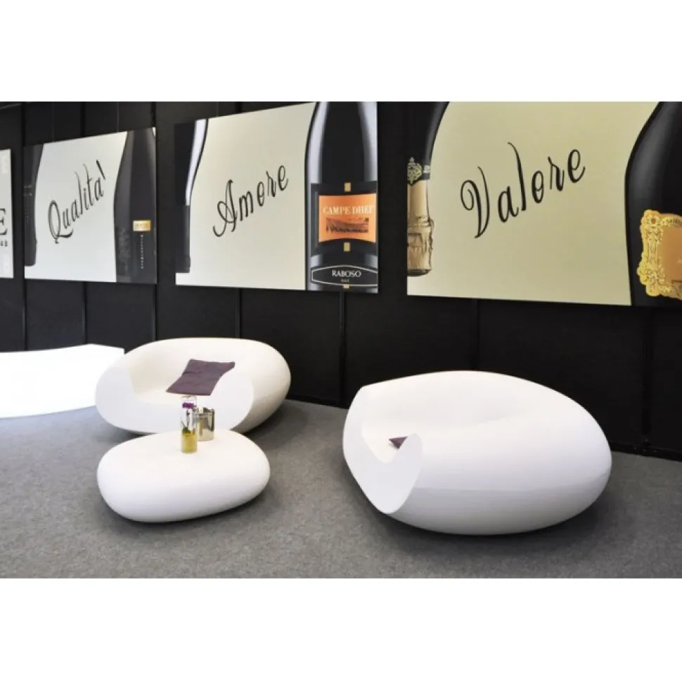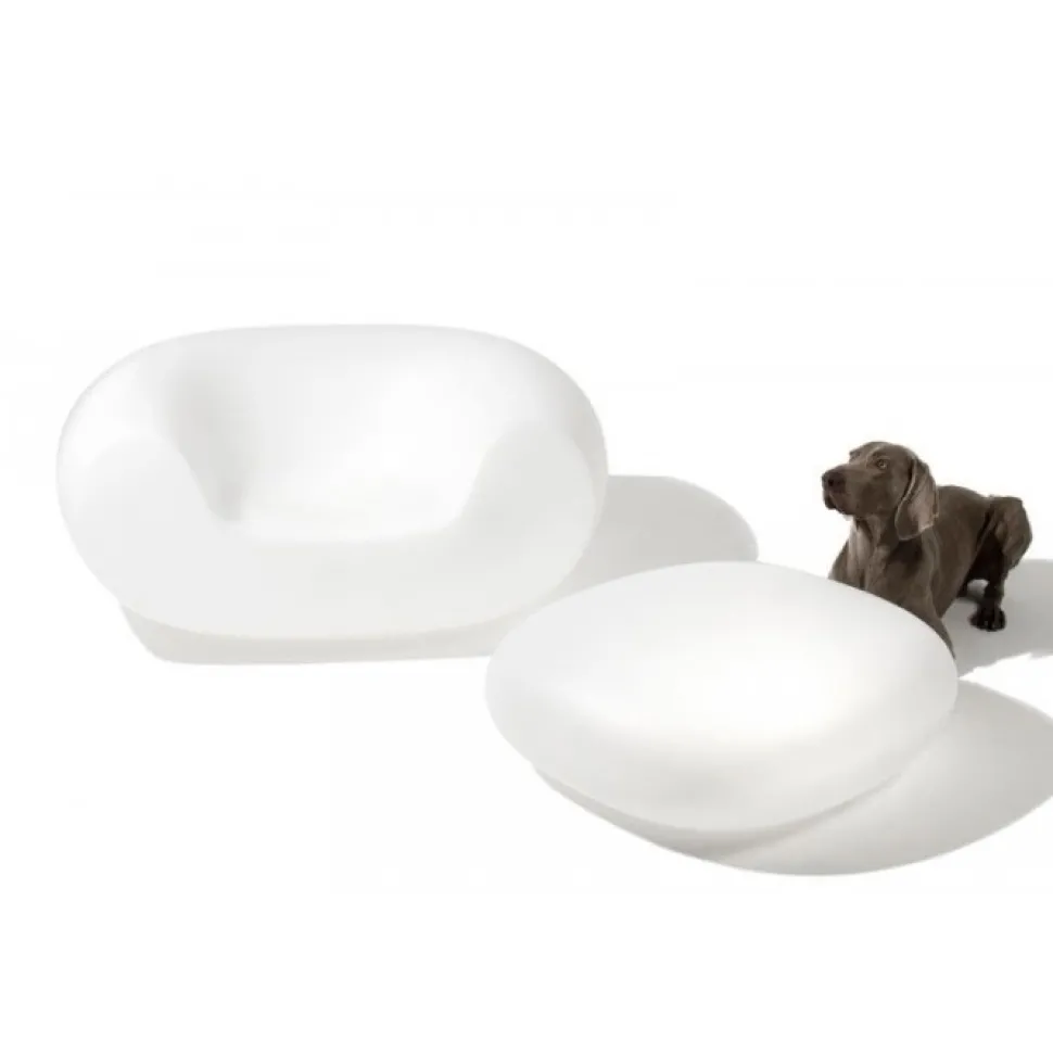 E La Reinterpretazione Della Piu Famosa Crochet Chair, Dotata Di Pouf Poggiapiedi Crea Una Micro Famiglia Di Prodotti.