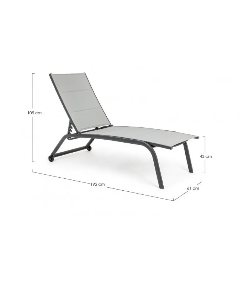 Lettino Alto C-Ruote Cleopas Antrac.Zh11 Struttura In Alluminio, Verniciato A Polvere (Poliestere). Rivestimento In Textilene 2X1 (Con Imbottitura). Schienale Reclinabile In 5 Posizioni. Ruote In Plastica. Viteria In Acciaio Galvanizzato. Imballo Senza Cartone. – Dimensioni In Cm. 61 (L.) 192 (P.) 105 ( H.) 43 ( H1)