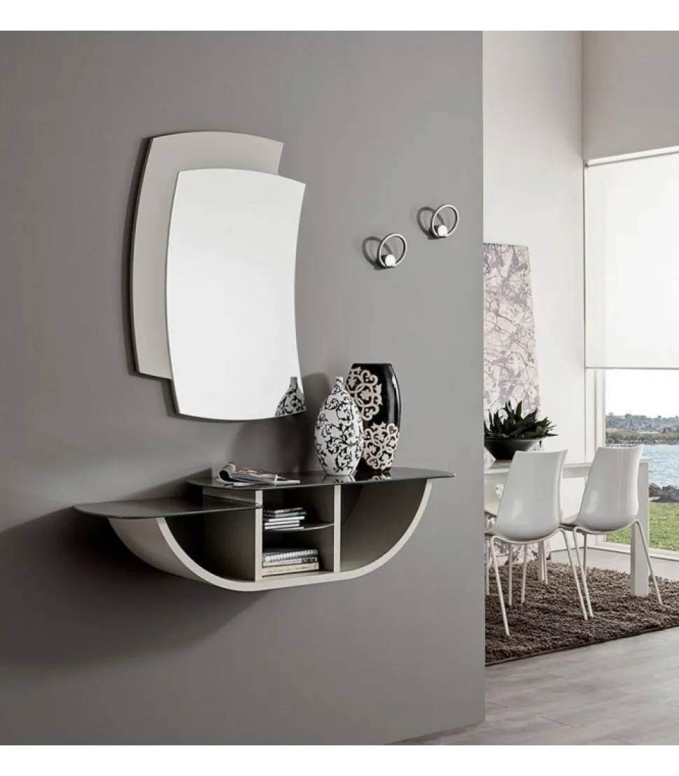 Specchio Sp. 4 Mm. Sagomato Applicato Su Un Pannello Impiallacciato.