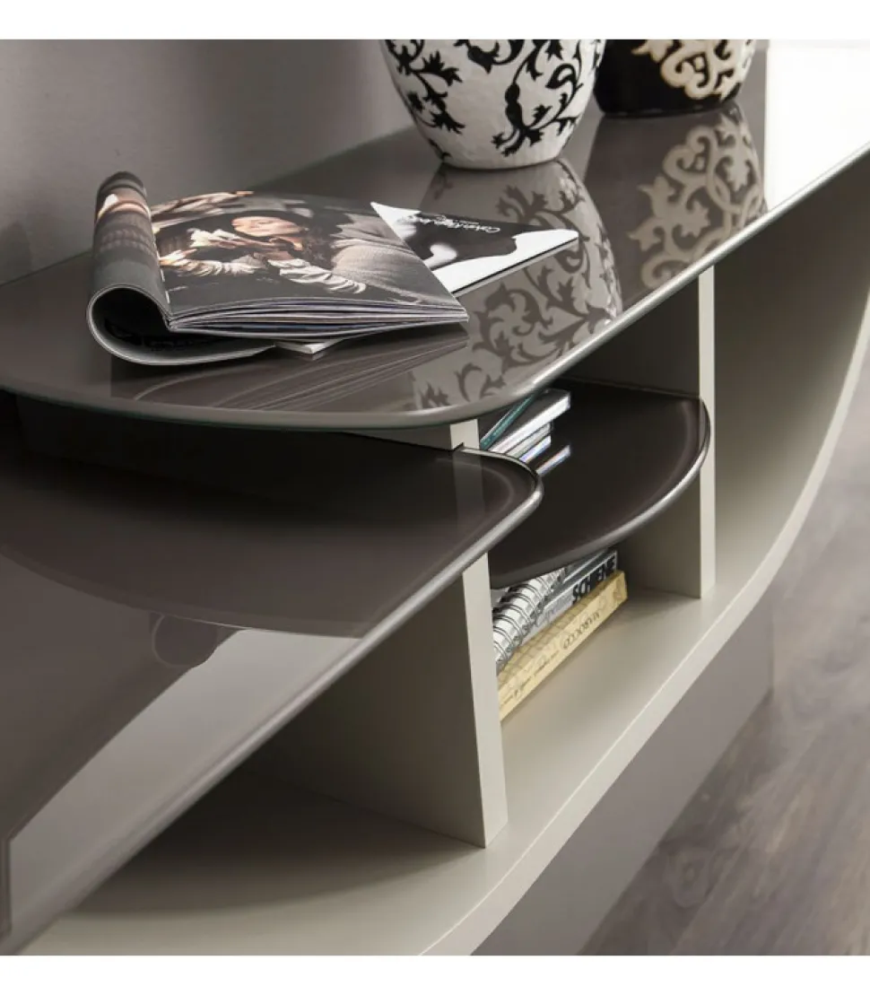Sistema Composto Da Un Particolare In Legno Curvato, Laccata Opaca. Versione Con Coperchio Realizzato In Legno Massiccio.