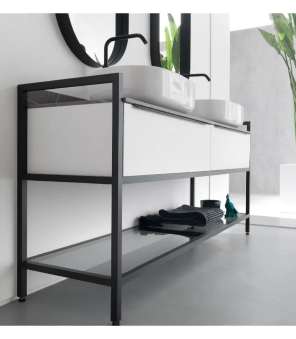 Il Modello Bd201 Composizione 03, Prodotto Da Compab E Disponibile Su , E Un Mobile Da Bagno Componibile Di Alta Qualita E Design Moderno. Questo Mobile E Caratterizzato Da Una Struttura In Alluminio Che Conferisce Robustezza E Leggerezza All’Arredo.