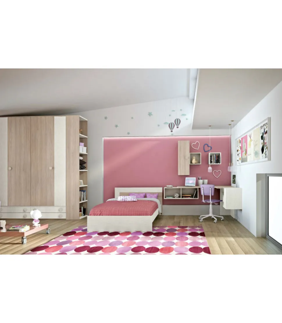 Elegante E Funzionale Composizione Per Cameretta. Comprende Un Comodo Letto Da Una Piazza E Mezzo Per Materassi Da 120X190Cm, Una Scrivania Con Sedia, Un Ampio Armadio E Molte Pratiche Mensole.