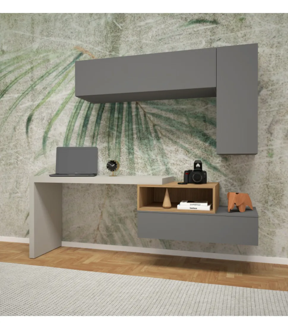 La Scrivania Va In Appoggio Al Vano A Giorno E Al Cassetto Appeso Al Muro. Il Cassetto Si Apre Con Il Meccanismo Push&Pull.