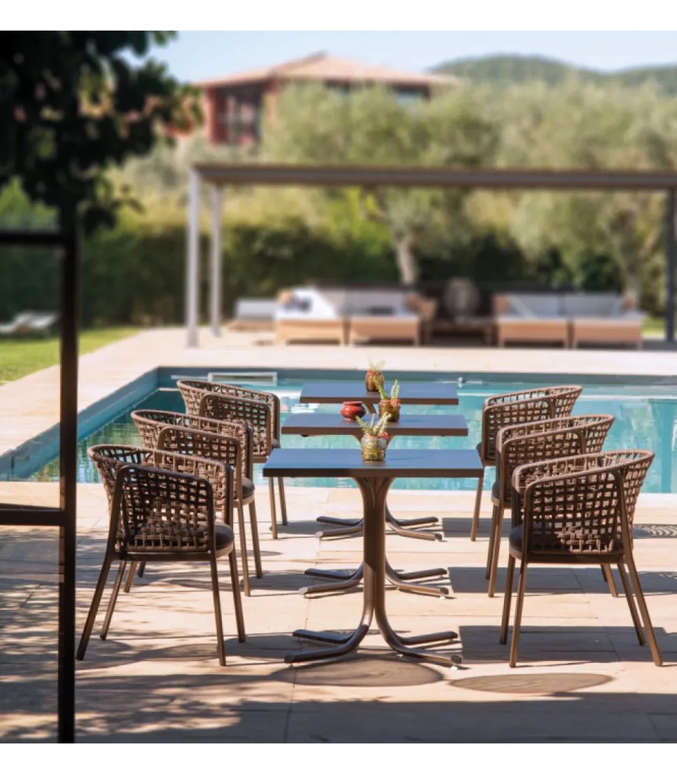 La Collezione Carousel Si Compone Di Quattro Versioni Di Poltroncina Dining, Tre Versioni Di Poltrona Lounge, Divano, Pouf, Coffee Table Quadrato E Rettangolare. Nelle Sedute, La Struttura A Cavalletto E In Tubolare Di Alluminio. Il Sedile, Costituito Da Una Lamiera In Lega Di Alluminio Che Viene Imbutita Per Conferire Una Forma Pulita, E Successivamente Fissato Alla Struttura Di Alluminio Attraverso Una Saldatura Di Tipo Strutturale, Eseguita Con Tecnologia Tig Che Conferisce Particolare Resistenza Oltre Che Un Miglior Standard A Livello Estetico. La Struttura Dello Schienale E In Acciaio Ed E Il Supporto Su Cui Sono Realizzati Gli Intrecci Decorativi Nei Vari Materiali Proposti. Tutti I Materiali Selezionati Garantiscono Una Resistenza E Una Stabilita Del Colore. Per La Poltroncina Dining E Prevista Una Versione In Tessuto Tecnico Quale Propilene In Fibra Fiber Fill, Con Cui Viene Realizzato Un Cuscino Sedile E Uno Schienale Autoportante. Questi Materiali Garantiscono Idrorepellenza, Per Questo Il Prodotto E Particolarmente Idoneo In Tutti Gli Usi Di Ambienti Marini E In Condizioni Climatiche Estreme. I Pouf Hanno Una Struttura In Tubolare Ovale Di Alluminio Mentre I Tavoli Hanno Una Struttura In Tondino Di Acciaio Con Piano In Lega Di Alluminio E Sottopiedi Regolabili In Nylon E Vite Inox. Tutti Decorati Con Intreccio Di Corda.