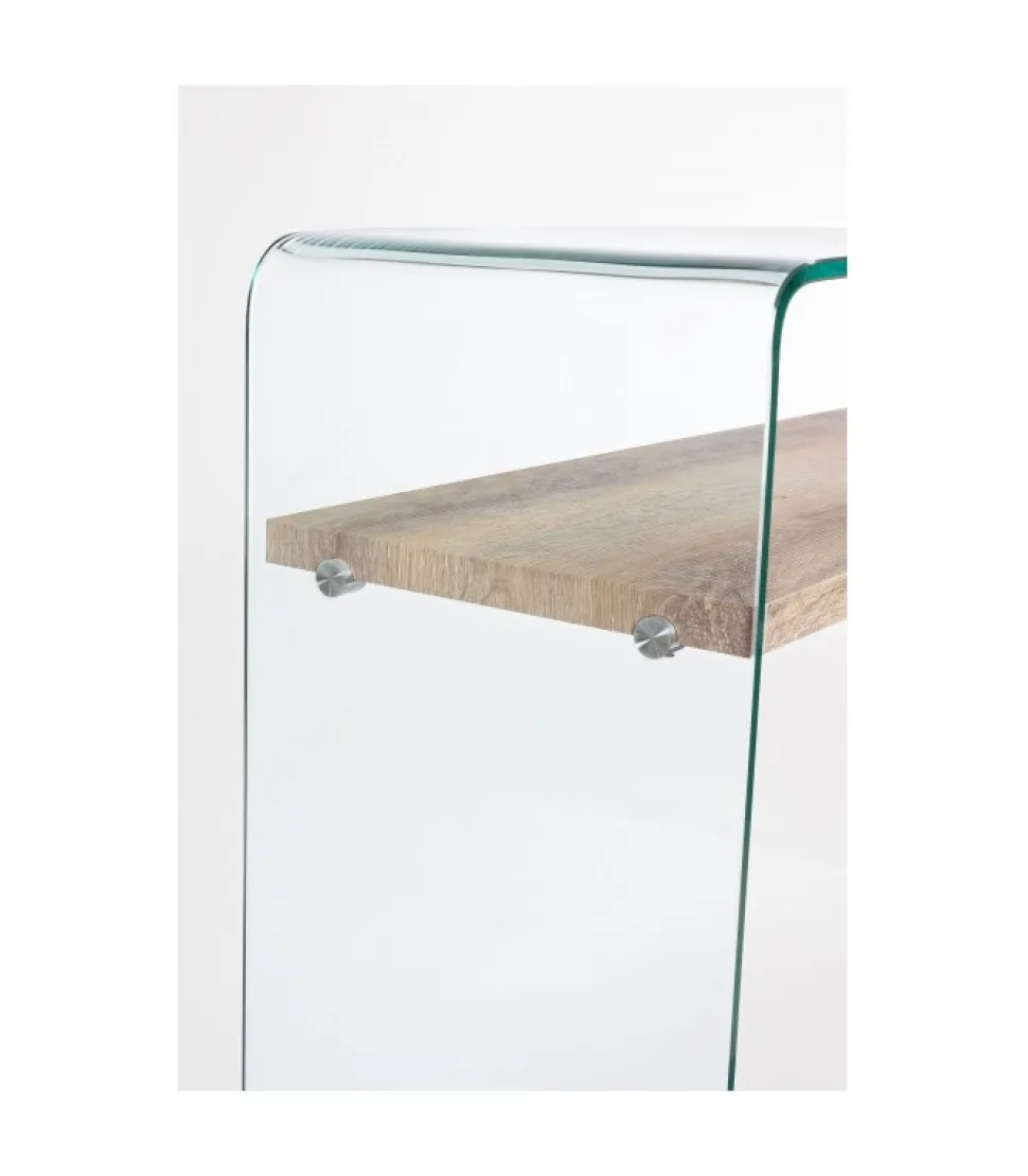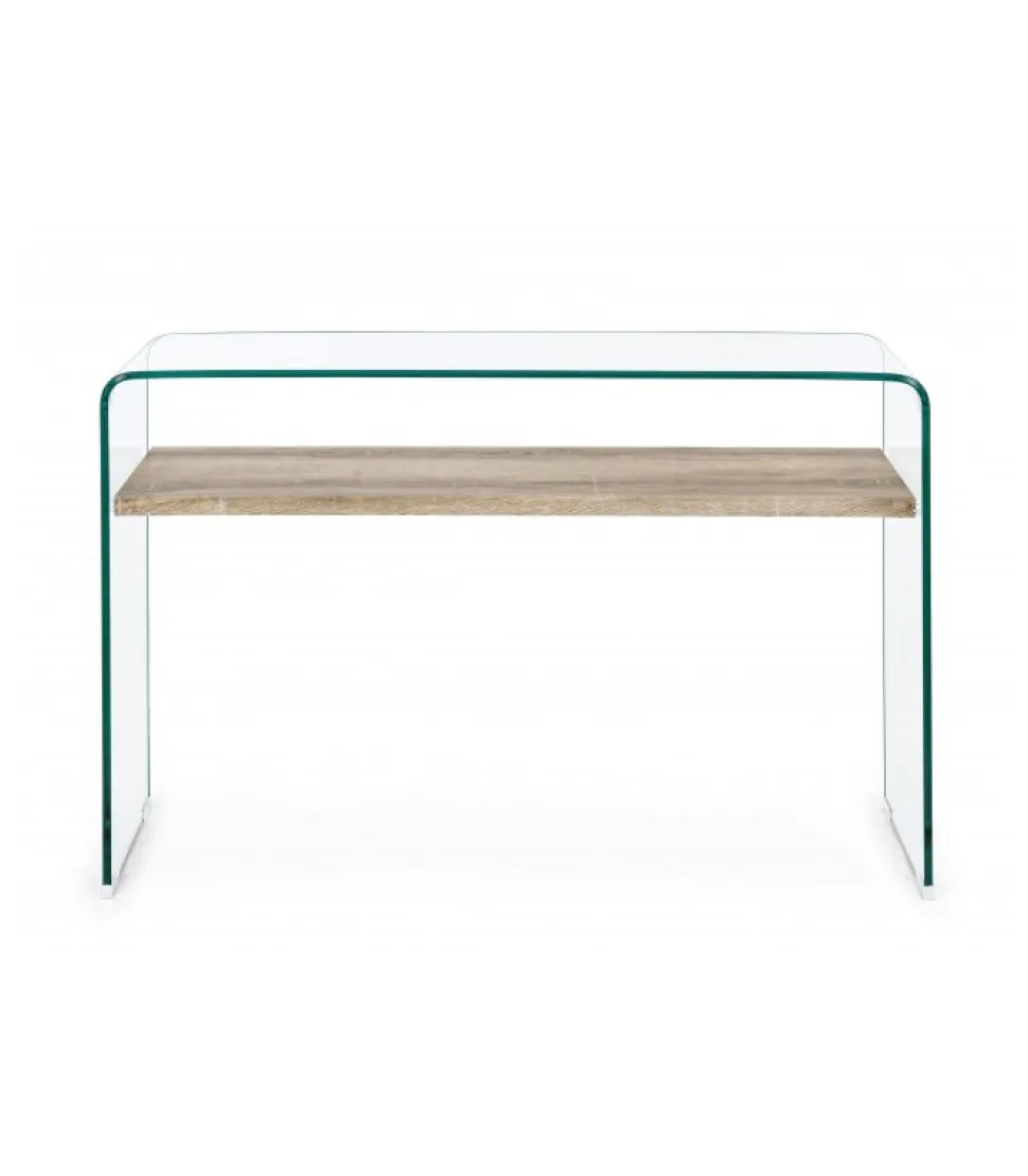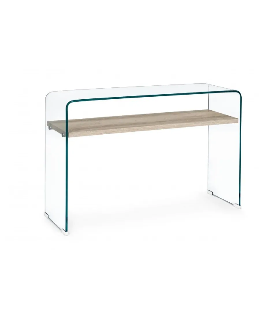 Consolle 2P Kenya Rett 110X35Vetro Non Temperato Trasparente Sp 12Mm- Mensola In Mdf Rivestito Con Carta Melaminica Effetto Legno-Portata Max Mensola 1,5Kg-Da Assemblare.Dimensioni:110(L) – 35(P) – 75(H)