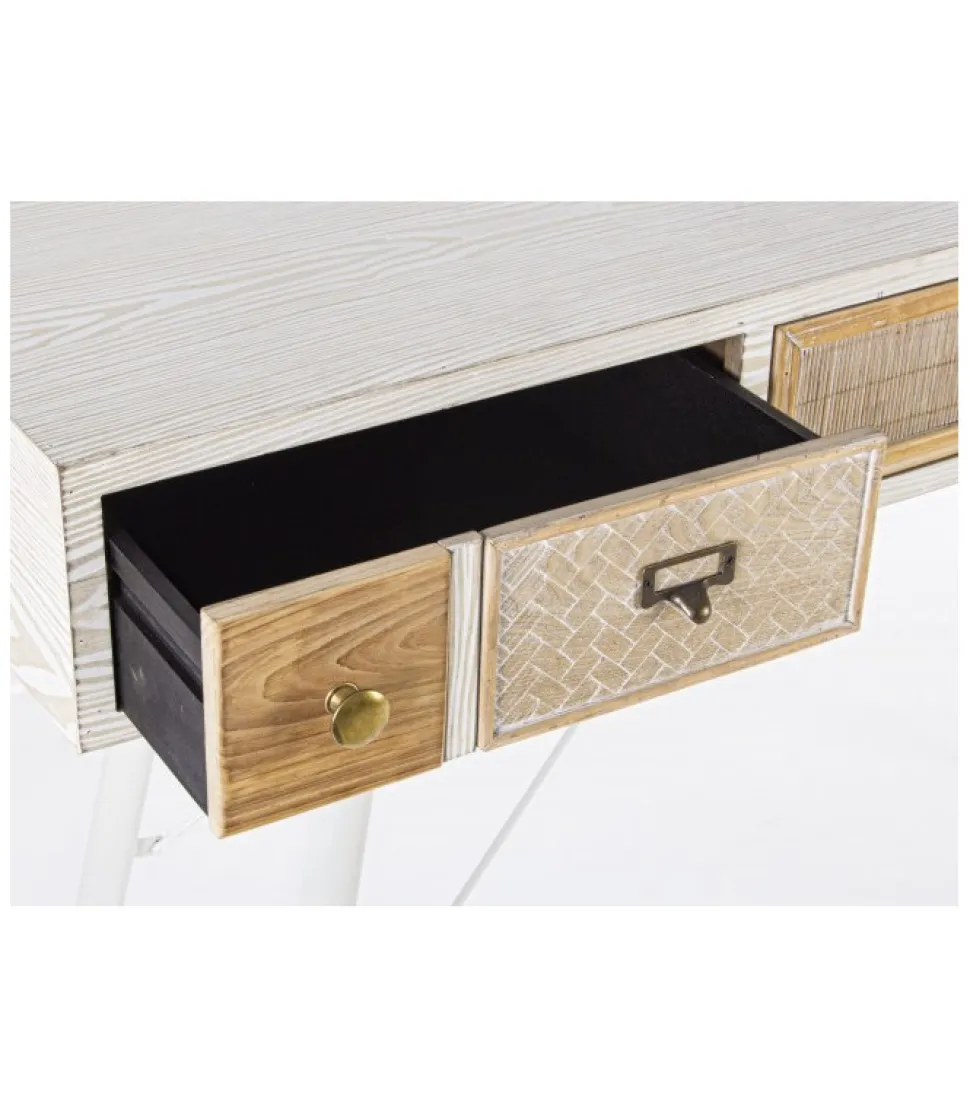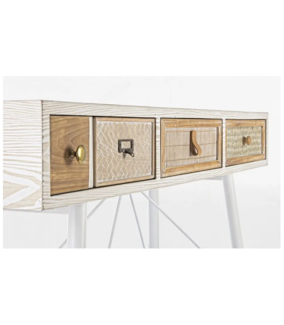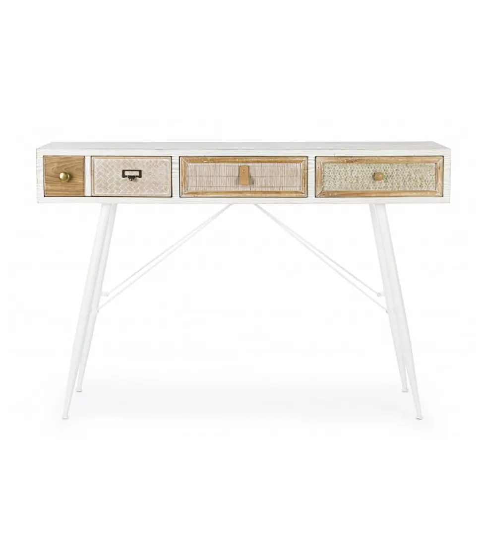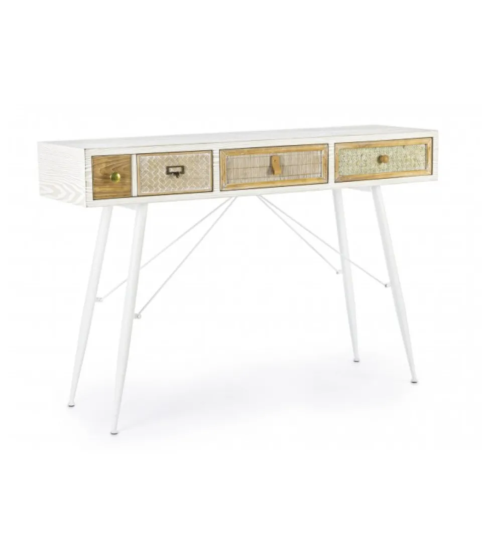 Consolle 3C Eloisestruttura In Mdf- Cassetti In Mdf O Legno Di Abete Con Inserti In Rattan O Bambu- Pomelli In Acciaio- Gambe In Acciaio- Finitura A Base D’Acqua- Gambe Da Assemblare.Dimensioni:120(L) – 35(P) – 80(H)