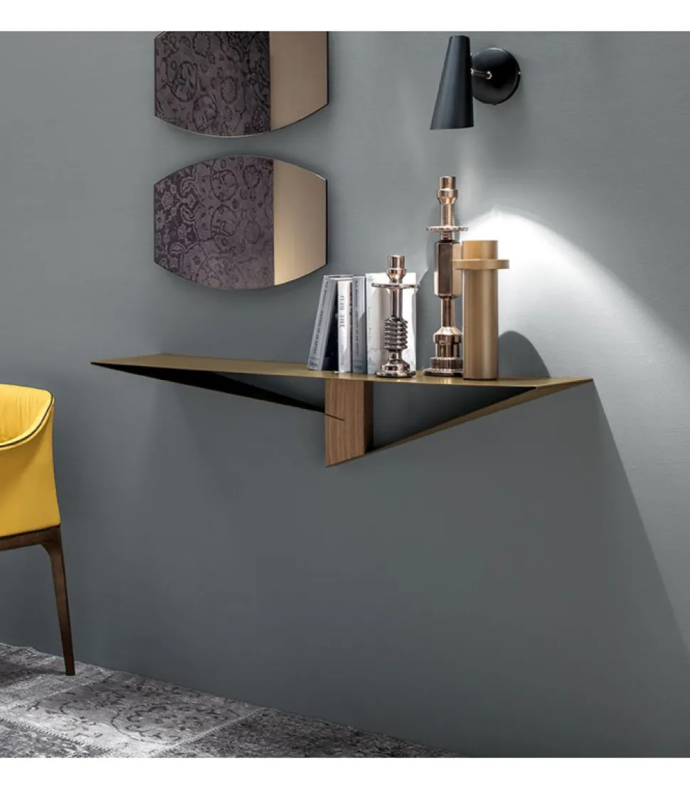 Consolle A Muro In Metallo Con Elemento Centrale Di Sostegno In Finitura Legno. La Struttura E Disponibile In 4 Colori Diversi, L’Elemento Di Sostegno E Disponibile Anch’Esso In 4 Colori. Scegli Il Tuo Preferito.