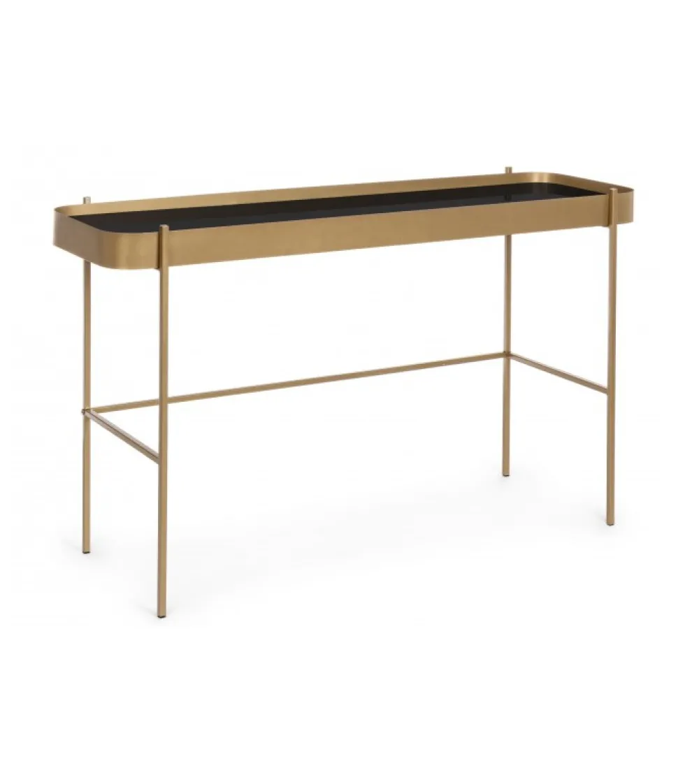 Consolle Rashida Oro 120X43Struttura In Acciaio, Verniciata A Polvere Epossidica- Piano In Vetro- Gambe Da Assemblare.Dimensioni:120.5(L) – 43(P) – 75(H)