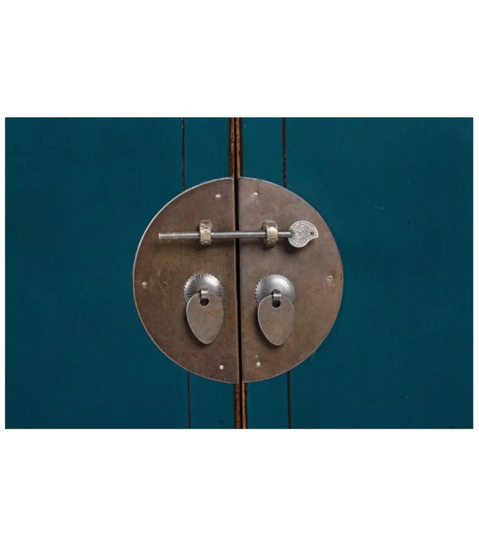 Struttura In Legno Di Olmo. Schienale E Pannelli Interni In Compensato. Finitura Finale Lucida E Patinata A Base D’Acqua. Maniglie In Rame.