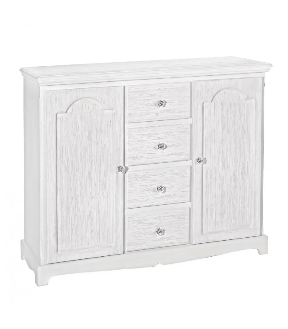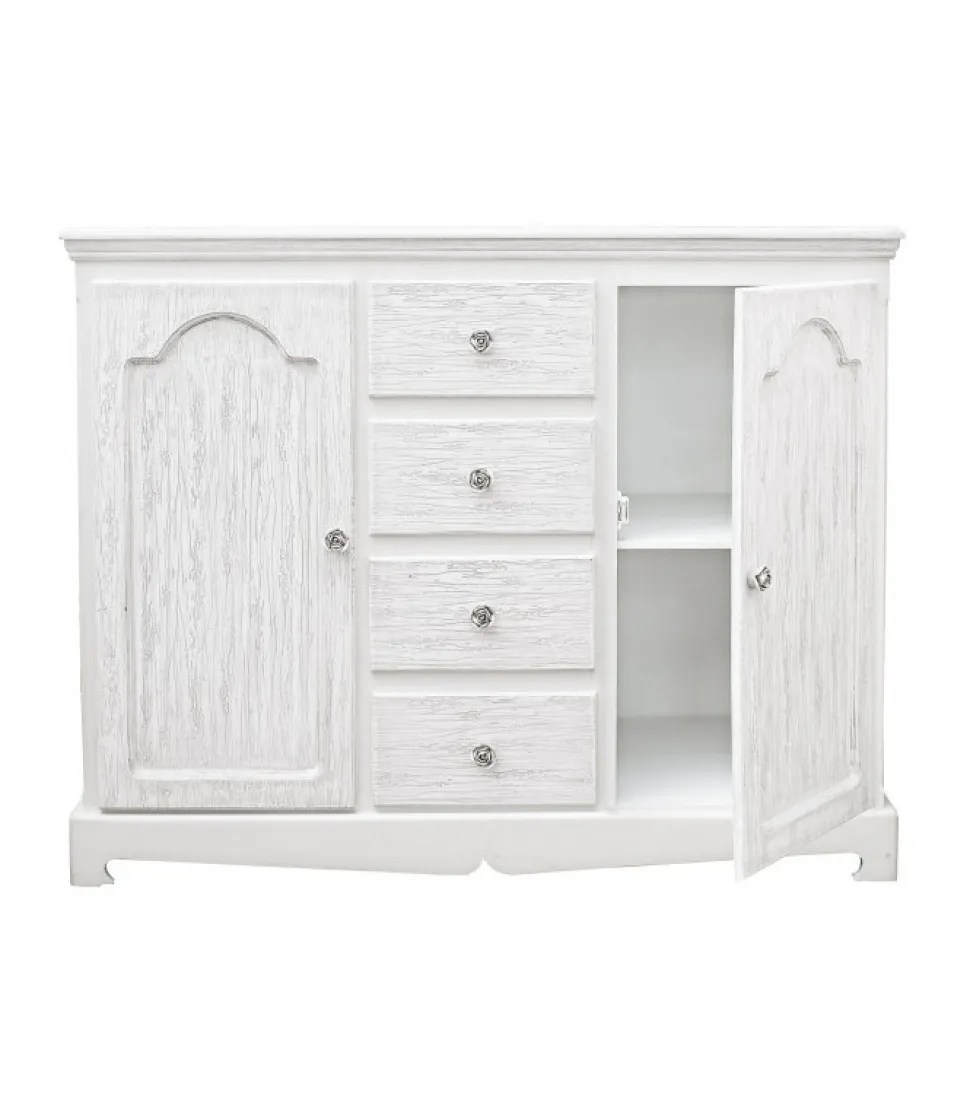 Struttura In Mdf. Finitura Bianca Opaca, Frontali E Piani Con Effetto Decapato. Maniglie In Poliresina. Vano Porta Comprensivo Di Mensola