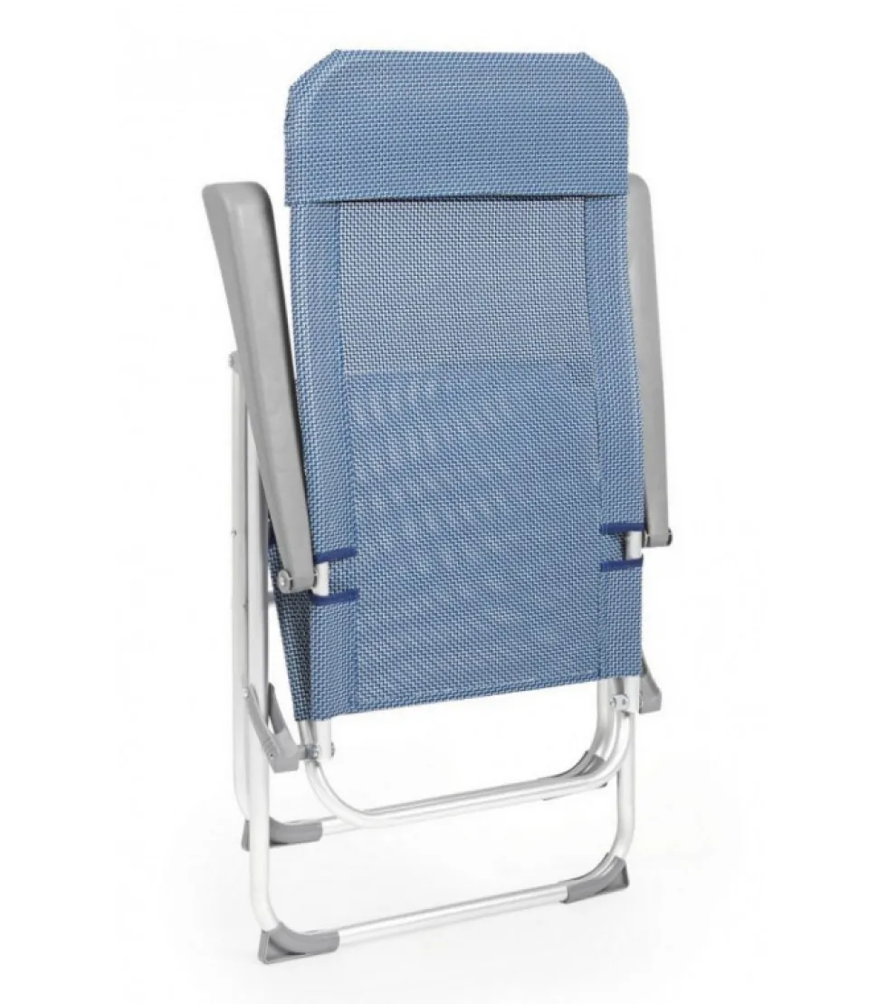 Sdraio Cross Schien Alto Blu Mix Struttura In Alluminio Anodizzato 22X1.0/19Mm. Tessuto In Textilene 4X4 660Gr/M2. Sette Posizioni. Pieghevole – Dimensioni In Cm. 58 (L.) 62.5 (P.) 110 ( H.) 42 ( H1) – 60 ( H2)