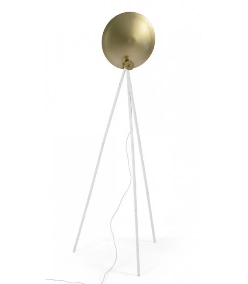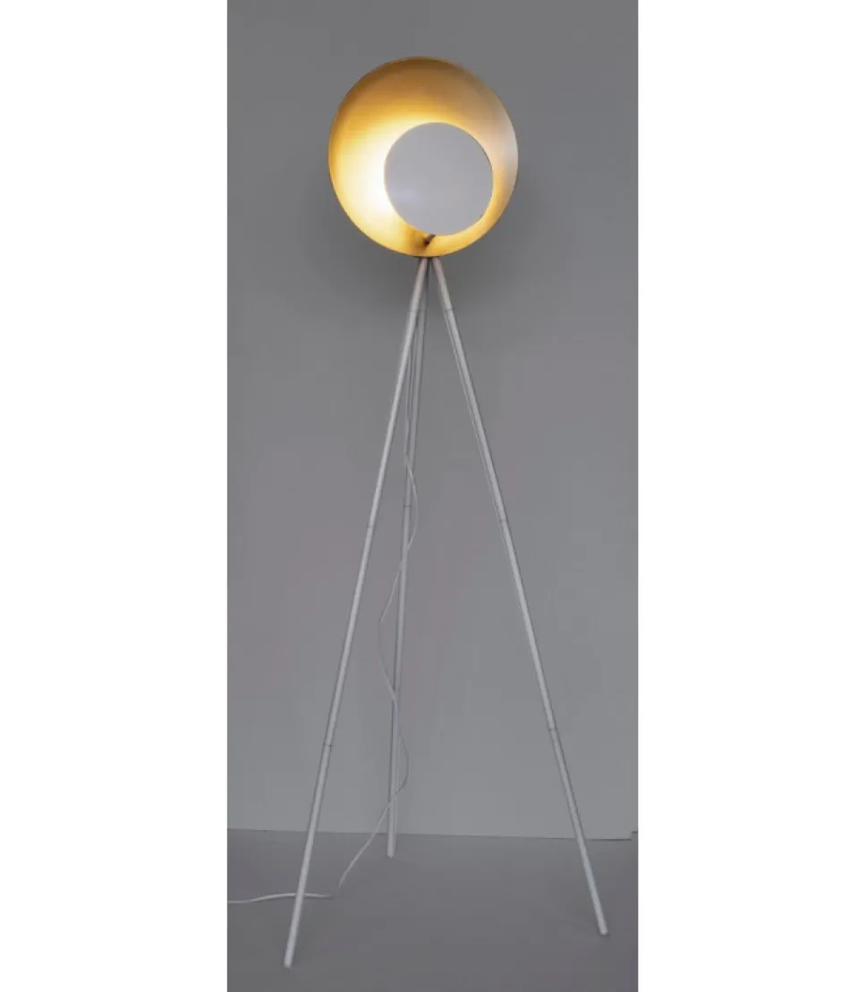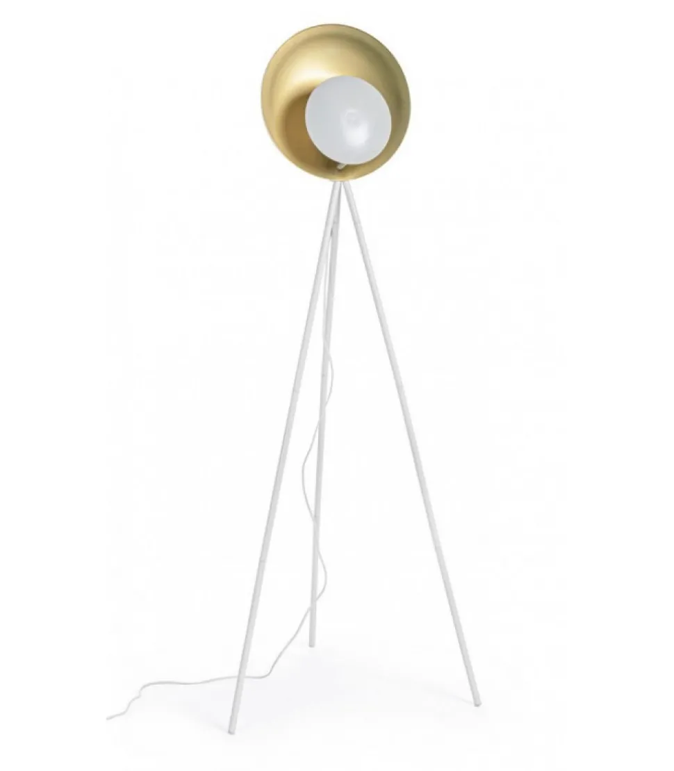 Piantana Design Treppiede Bia-Oro H156 Acciaio Verniciato A Polvere Epossidica. Lamp. E27 Max 60W, E27 11W Comp. Fluor Integr. Risp. En., E27 42W Alog. Risp. En. Lampadina/E Non Inclusa/E. Lunghezza Totale Cavo 3Mt. Distanza Tra Lampada E Interruttore: 180 Cm. Da Assemblare – Dimensioni In Cm. 87X56X155 H
