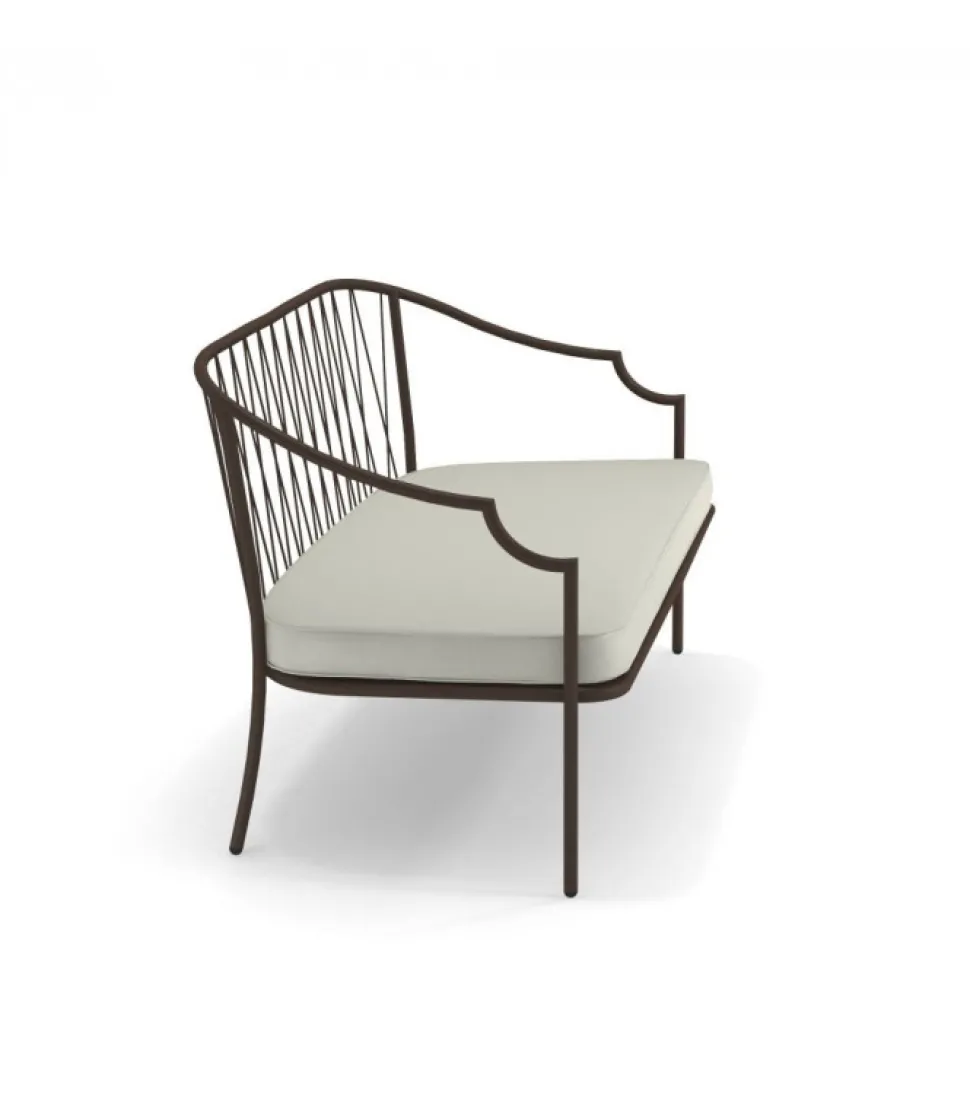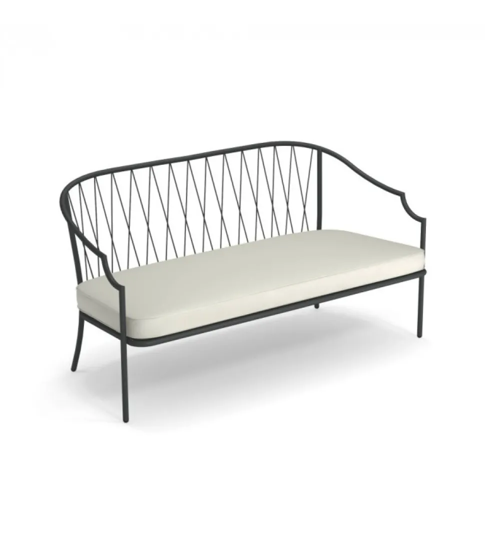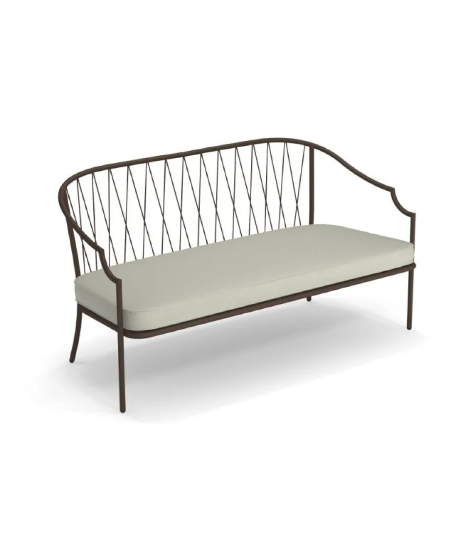 Divano Con Struttura In Acciaio Verniciato, La Seduta E In Lamiera Stirata Pre Zincata A Caldo E Verniciata, Lo Schienale E In Acciaio A Tondini Pre Zincato A Caldo. E Accessoriabile Di Cuscino Per Lo Schienale Ed E Dotato Di Cuscino Per La Seduta, Disponibile In Molti Tessuti E Molti Colori.