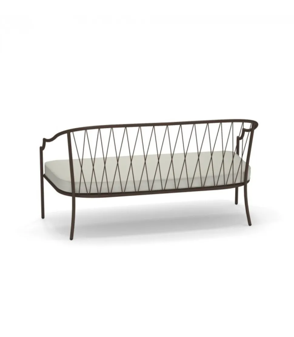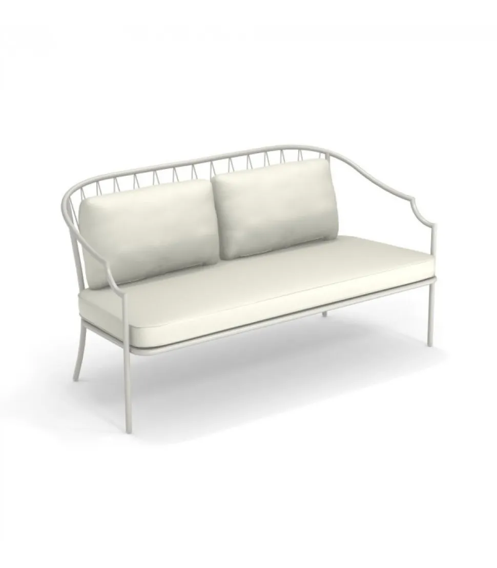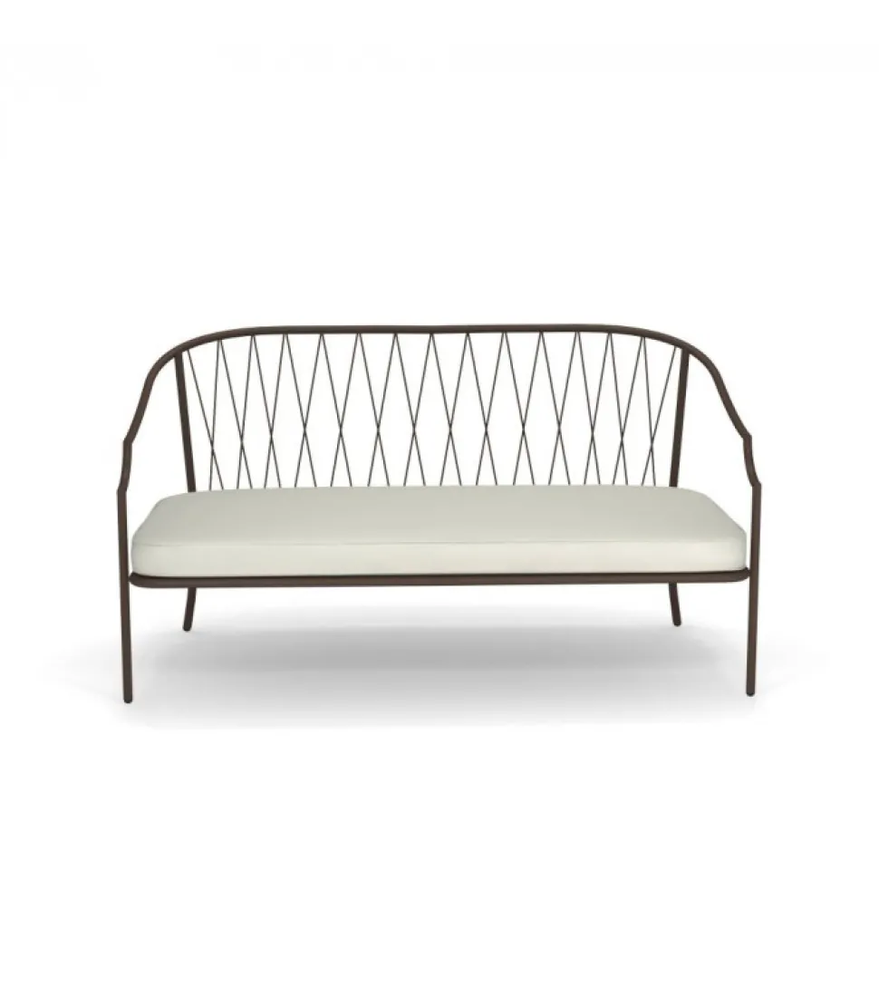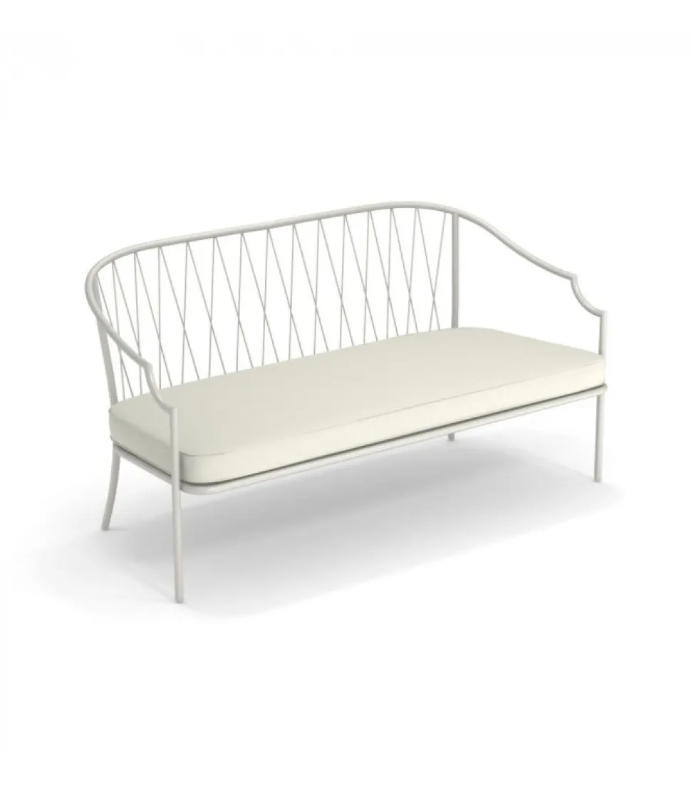 Divano Con Struttura In Acciaio Verniciato, La Seduta E In Lamiera Stirata Pre Zincata A Caldo E Verniciata, Lo Schienale E In Acciaio A Tondini Pre Zincato A Caldo. E Accessoriabile Di Cuscino Per Lo Schienale Ed E Dotato Di Cuscino Per La Seduta, Disponibile In Molti Tessuti E Molti Colori.
