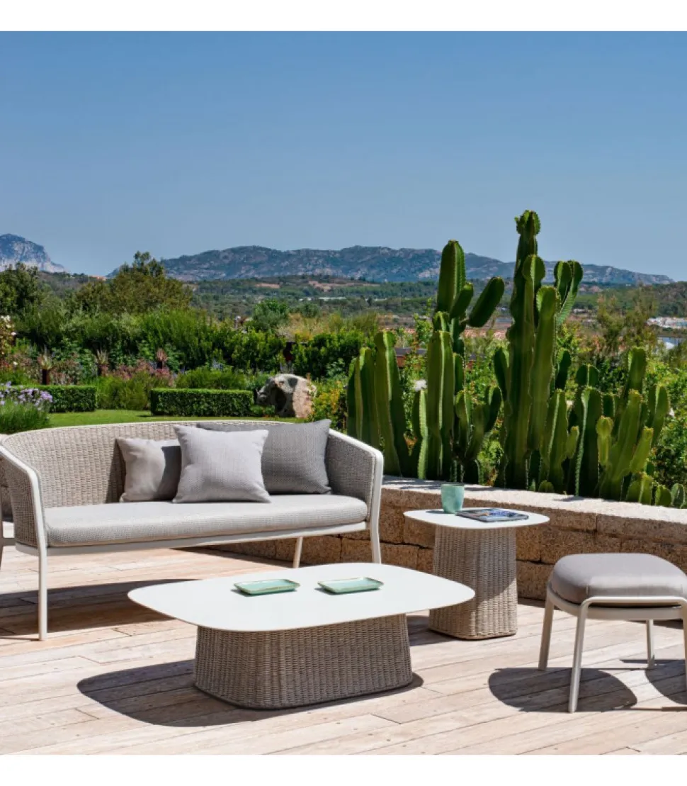 La Collezione Carousel Si Compone Di Quattro Versioni Di Poltroncina Dining, Tre Versioni Di Poltrona Lounge, Divano, Pouf, Coffee Table Quadrato E Rettangolare. Nelle Sedute, La Struttura A Cavalletto E In Tubolare Di Alluminio. Il Sedile, Costituito Da Una Lamiera In Lega Di Alluminio Che Viene Imbutita Per Conferire Una Forma Pulita, E Successivamente Fissato Alla Struttura Di Alluminio Attraverso Una Saldatura Di Tipo Strutturale, Eseguita Con Tecnologia Tig Che Conferisce Particolare Resistenza Oltre Che Un Miglior Standard A Livello Estetico. La Struttura Dello Schienale E In Acciaio Ed E Il Supporto Su Cui Sono Realizzati Gli Intrecci Decorativi Nei Vari Materiali Proposti. Tutti I Materiali Selezionati Garantiscono Una Resistenza E Una Stabilita Del Colore. Per La Poltroncina Dining E Prevista Una Versione In Tessuto Tecnico Quale Propilene In Fibra Fiber Fill, Con Cui Viene Realizzato Un Cuscino Sedile E Uno Schienale Autoportante. Questi Materiali Garantiscono Idrorepellenza, Per Questo Il Prodotto E Particolarmente Idoneo In Tutti Gli Usi Di Ambienti Marini E In Condizioni Climatiche Estreme. I Pouf Hanno Una Struttura In Tubolare Ovale Di Alluminio Mentre I Tavoli Hanno Una Struttura In Tondino Di Acciaio Con Piano In Lega Di Alluminio E Sottopiedi Regolabili In Nylon E Vite Inox. Tutti Decorati Con Intreccio Di Corda.