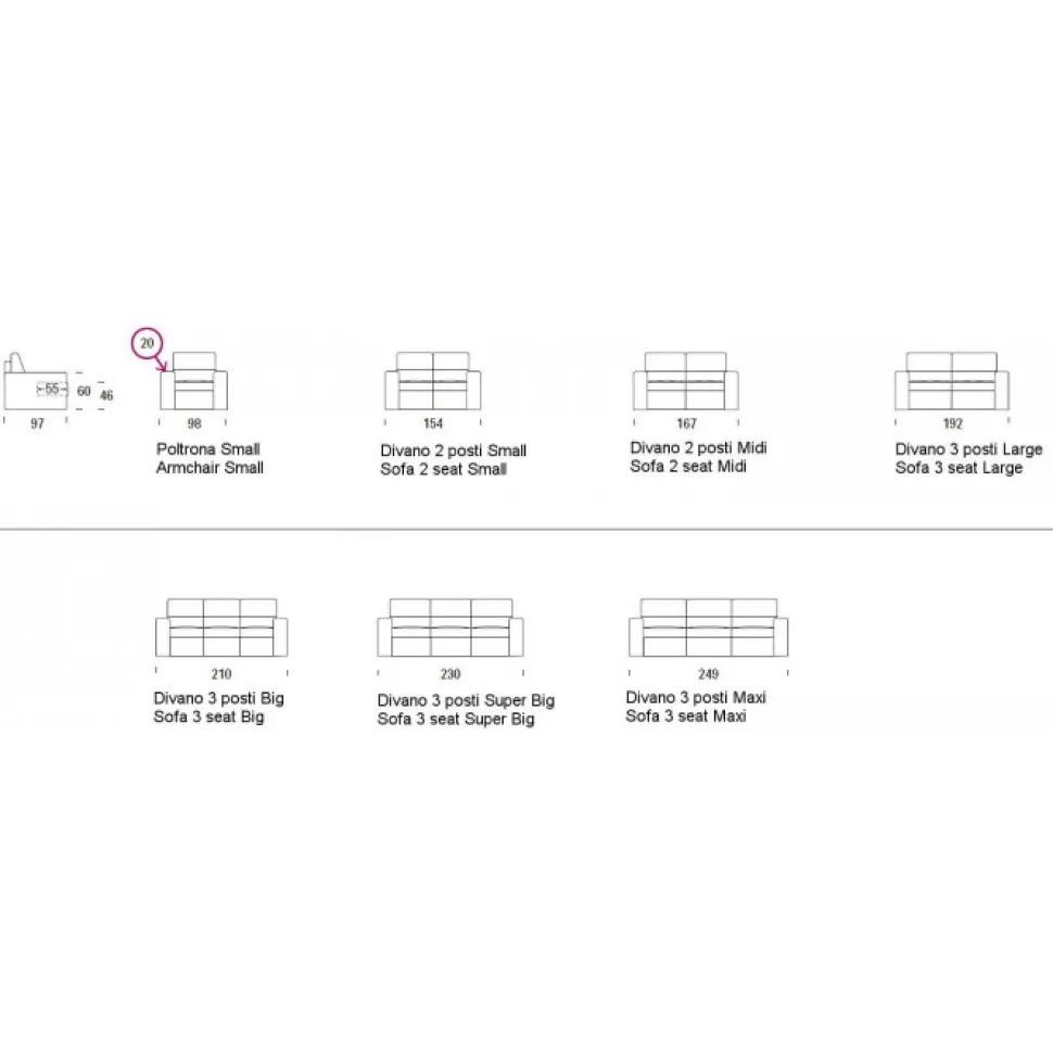 | Colore | Ecopelle Sibilla, Tessuto Lima, Tessuto Lutor, Tessuto Samuel Antimacchia, Tessuto Scarlet Antimacchia, Tessuto Sheraton, Tessuto Soleil, Tessuto Stern |