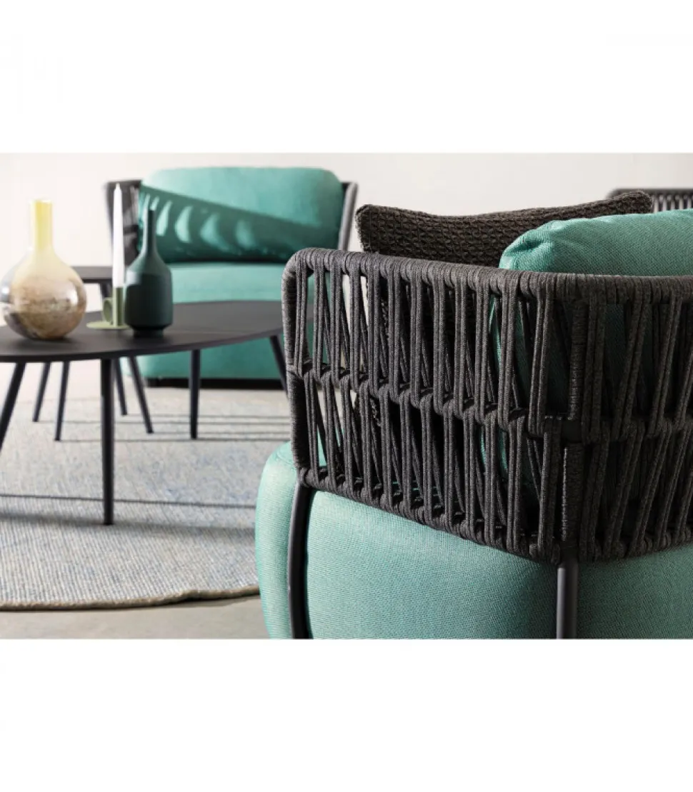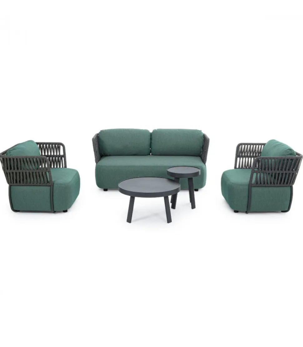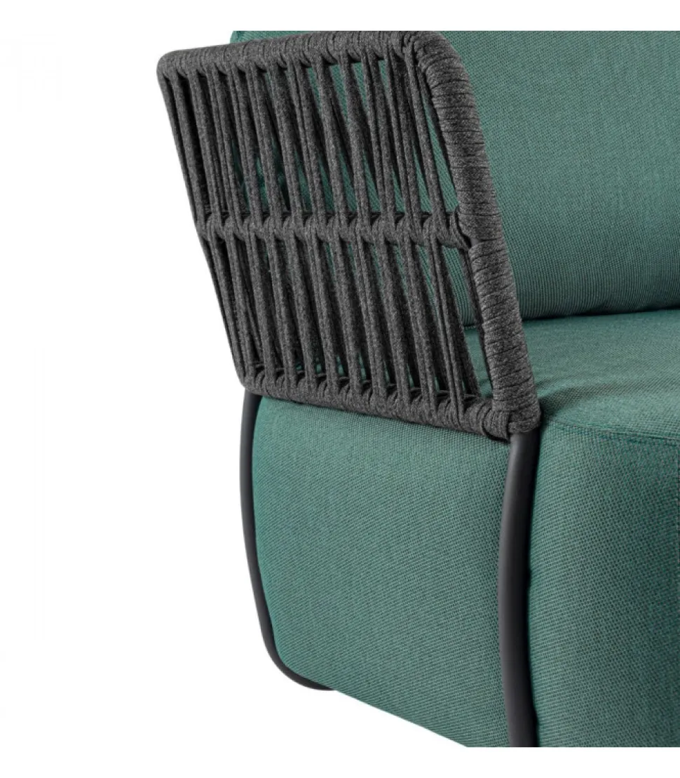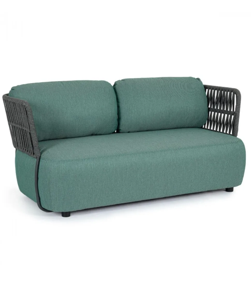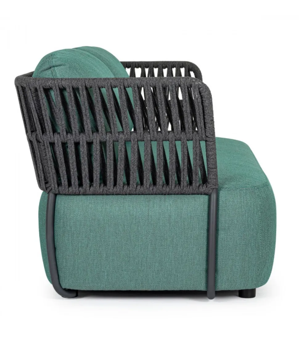 Divano Da Giardino, Struttura In Allumino Verniciato A Polveri Di Polistere, Con Intreccio Di Corde Di Olefin, Materiale Ad Alta Resistenza Per Esterni, Composto Da Polipropilene 100% Che Garantisce La Tenuta Ed Il Colore Nel Tempo.