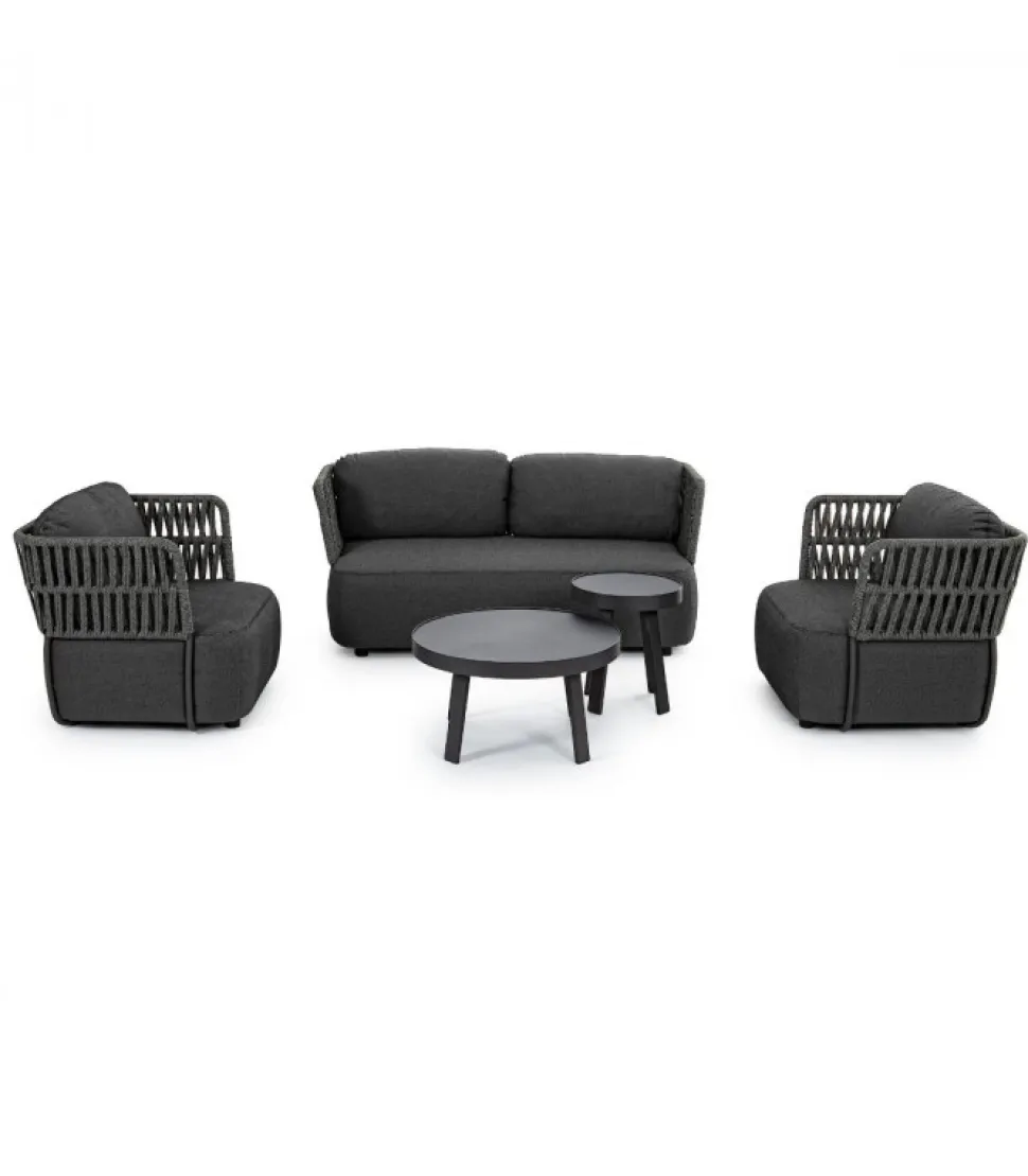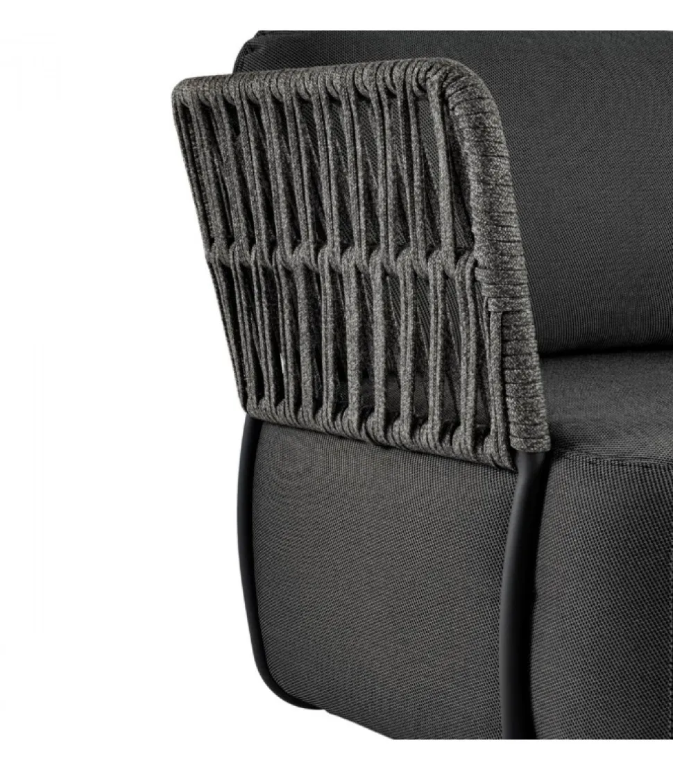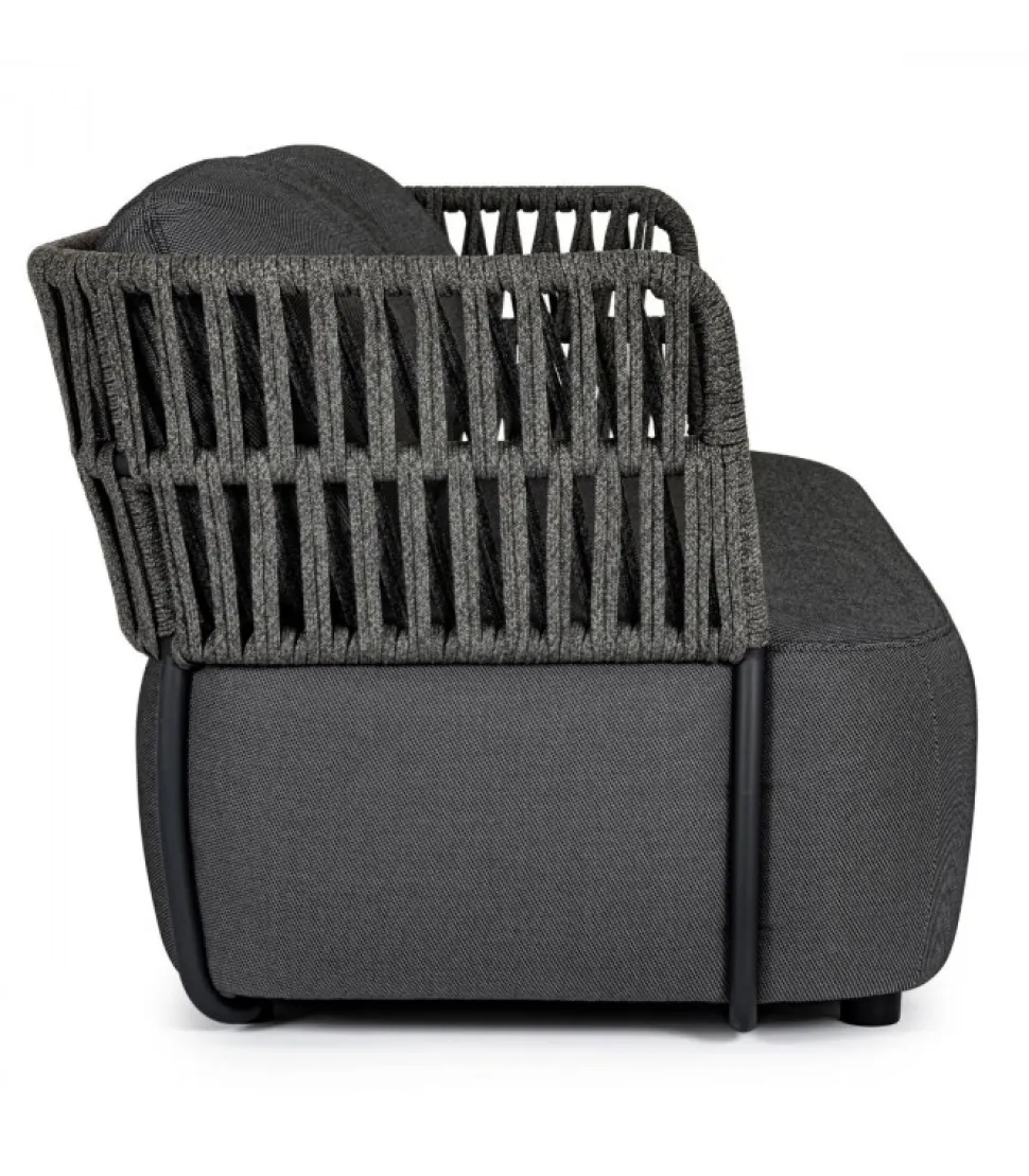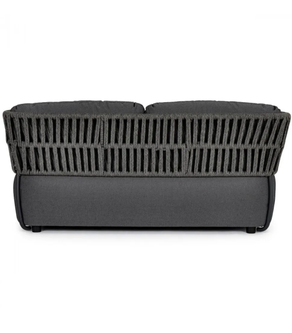 Divano Da Giardino, Struttura In Allumino Verniciato A Polveri Di Polistere, Con Intreccio Di Corde Di Olefin, Materiale Ad Alta Resistenza Per Esterni, Composto Da Polipropilene 100% Che Garantisce La Tenuta Ed Il Colore Nel Tempo.
