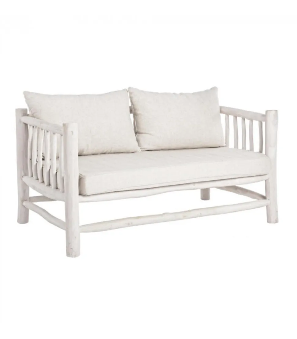 Divano (C-C) Sahel Struttura In Rami Di Teak Sbiancato Con Finitura Naturale. Cuscini Sfoderabili Con Tessuto Per Interno (40%Lino, 60%Cotone).