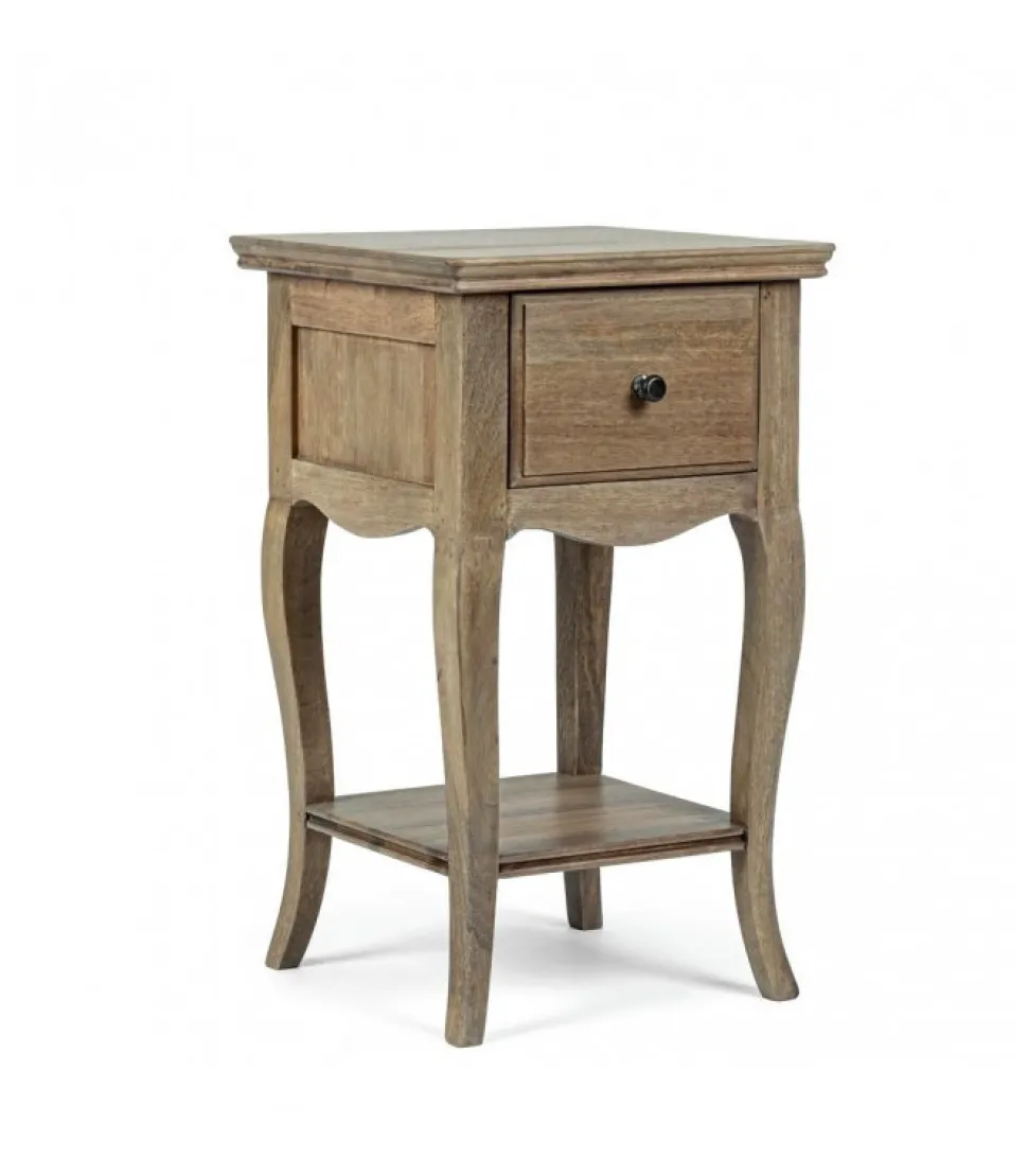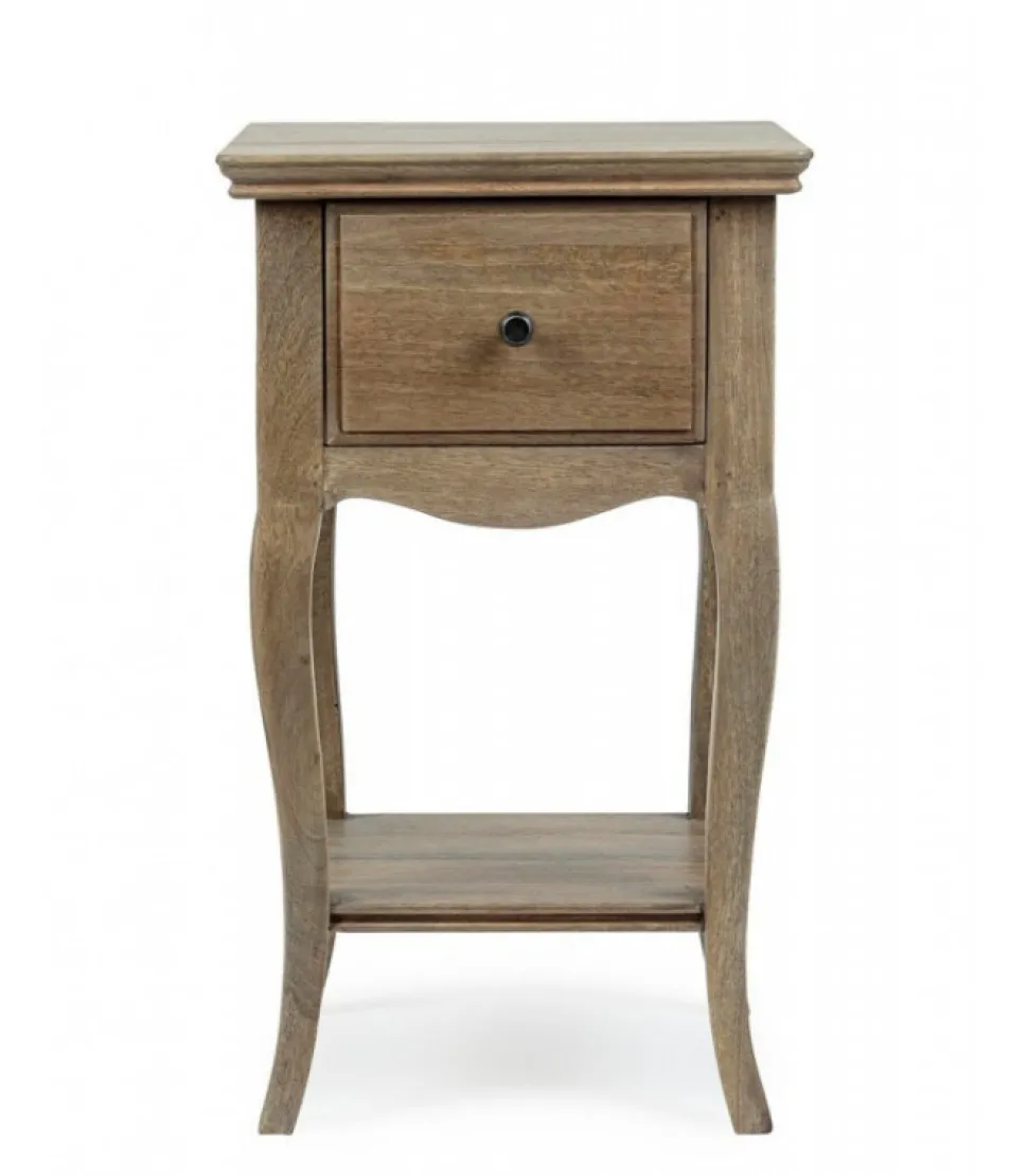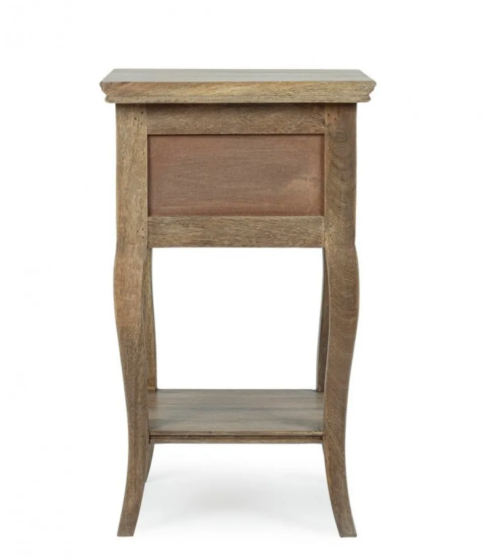 Comodino 1C Domitille Struttura In Legno Di Mango, Schienale E Fondo Cassetti In Mdf. Finitura Con Vernice A Base D’Acqua. Maniglie In Ghisa. – Dimensioni In Cm. 35 (L.) 35 (P.) 59 H