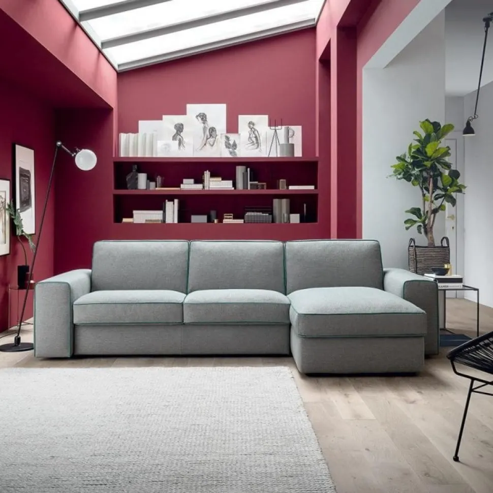 Divano Letto Efron Con Penisola, Seduta, Braccioli E Schienale, Tutto In Questo Divano Parla Il Linguaggio Della Comodita, Impreziosita Dal Dettaglio Sartoriale Del Cordoncino.