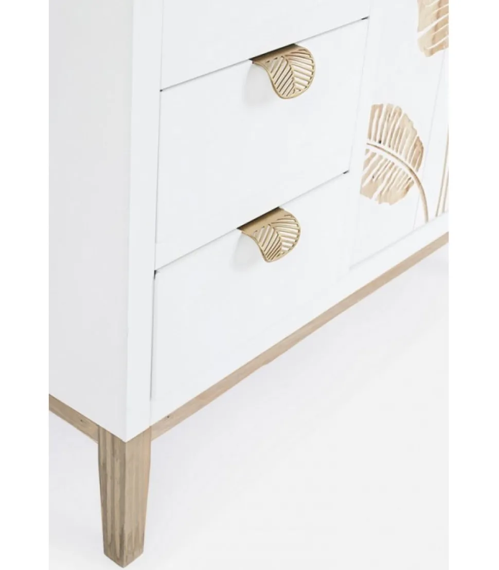 Credenza 1A-4C Folium Struttura In Abete E Mdf, Piano E Schienale In Mdf. Frontale Ante E Cassetti In Paulonia (Con Decoro Intarsiato A Mano) E Mdf. Finitura Vernice A Base D’Acqua. Maniglie In Acciaio. Gambe Da Assemblare. – Dimensioni In Cm. 75 (L.) 30 (P.) 80 H