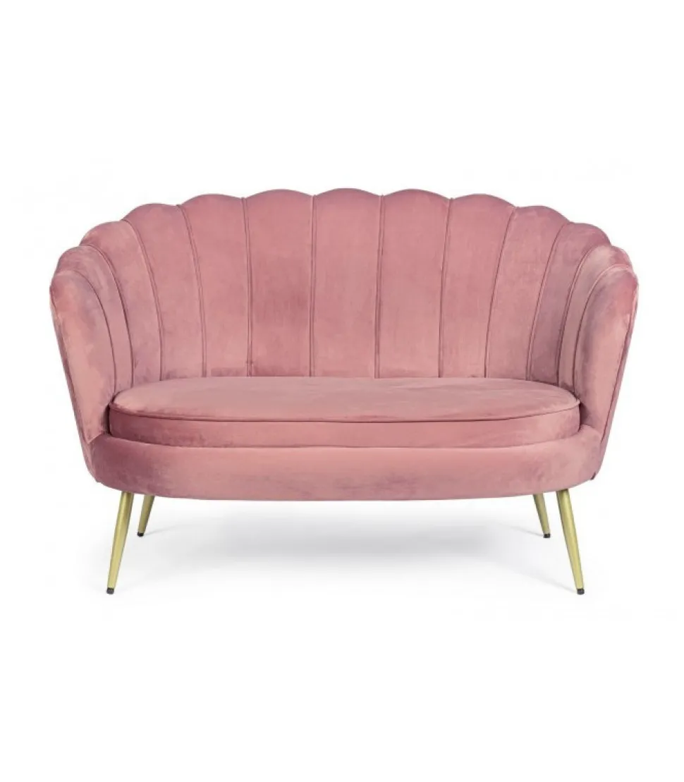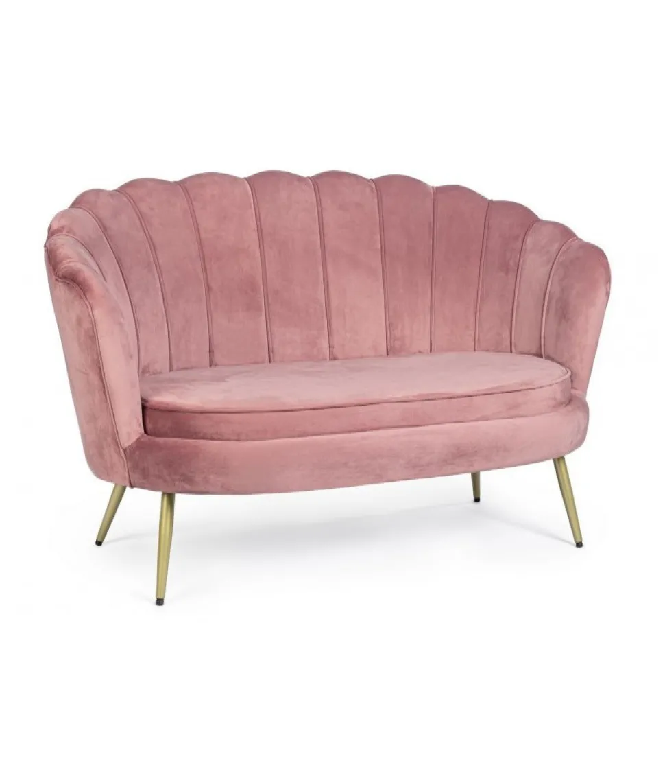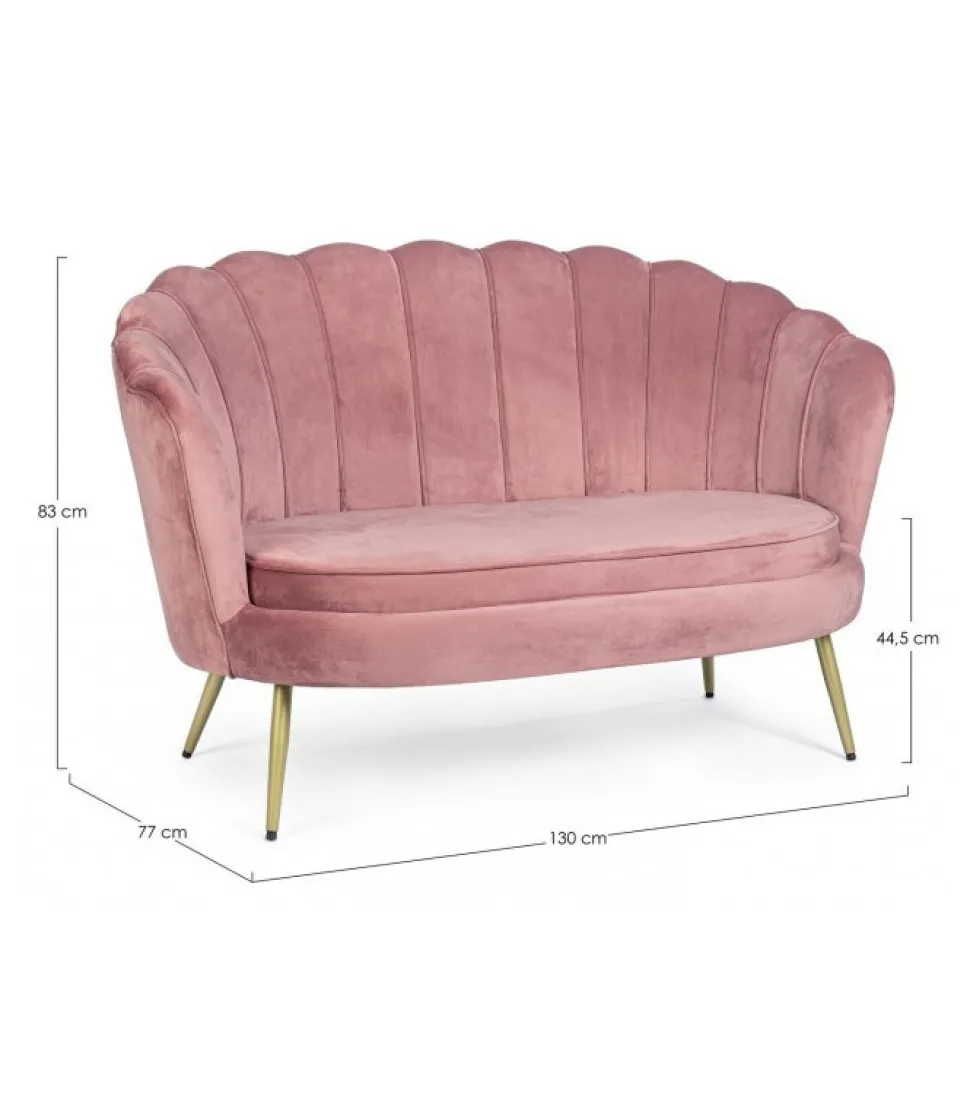 Divano 2P Giliola Rosa Antik Struttura In Legno Di Pino E Compensato. Gambe In Acciaio Verniciato A Polvere Epossidica. Rivestimento Non Sfoderabile In Poliestere Effetto Velluto. Imbottitura In Schiuma Poliuretanica, Densita’ Schienale 18Kg/M3 Seduta 28 Kg/M3. Gambe Da Assemblare. – Dimensioni In Cm. 130 (L.) 77 (P.) 83 H – 44.5 H1
