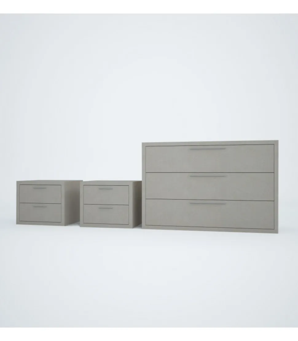 Gruppo Composto Da Como, Comodini Dal Taglio Dritto, Con Maniglia Sul Frontale E Disponibile In Finiture E Colori Diversi.