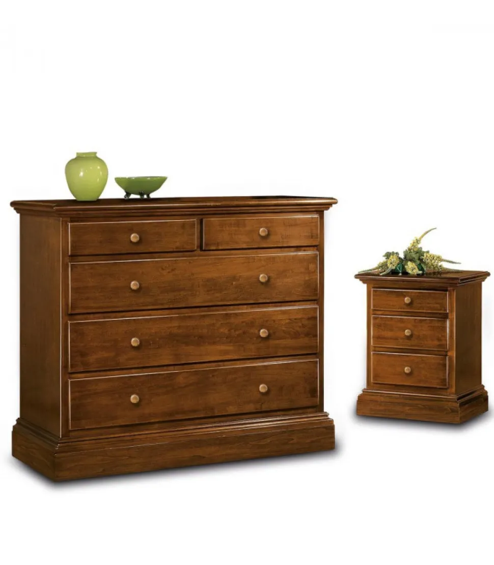 Trittico Composta Da Como E Due Comodini In Legno Massello Tinto Noce Nazionale.