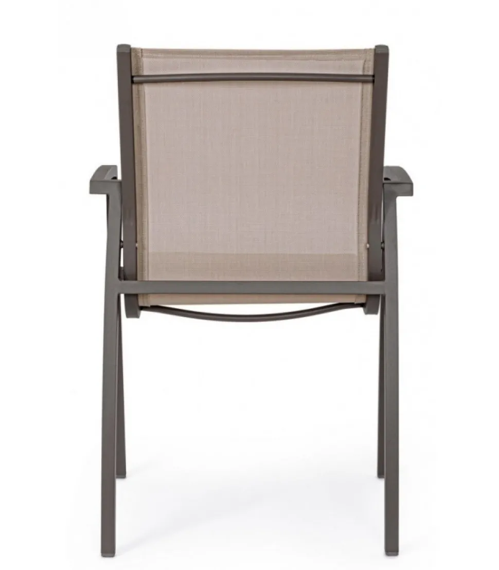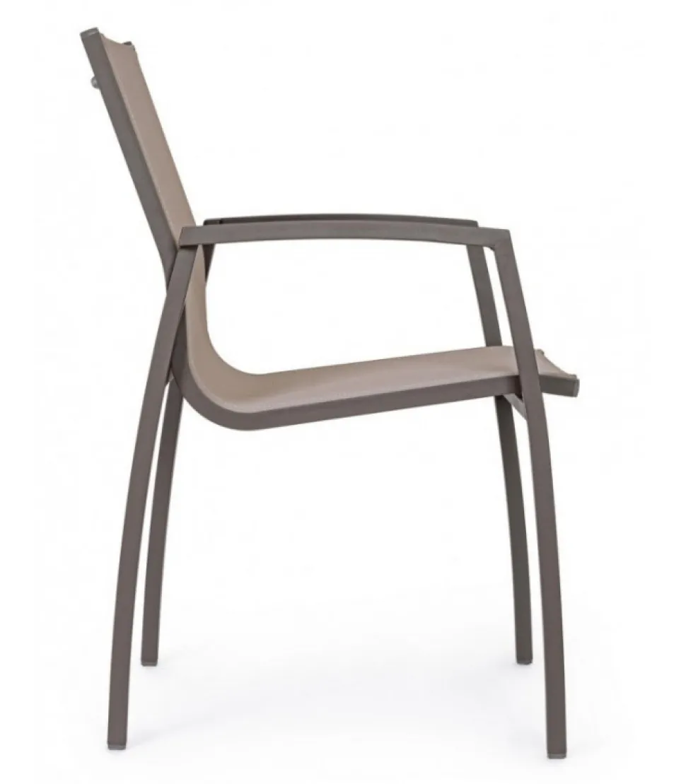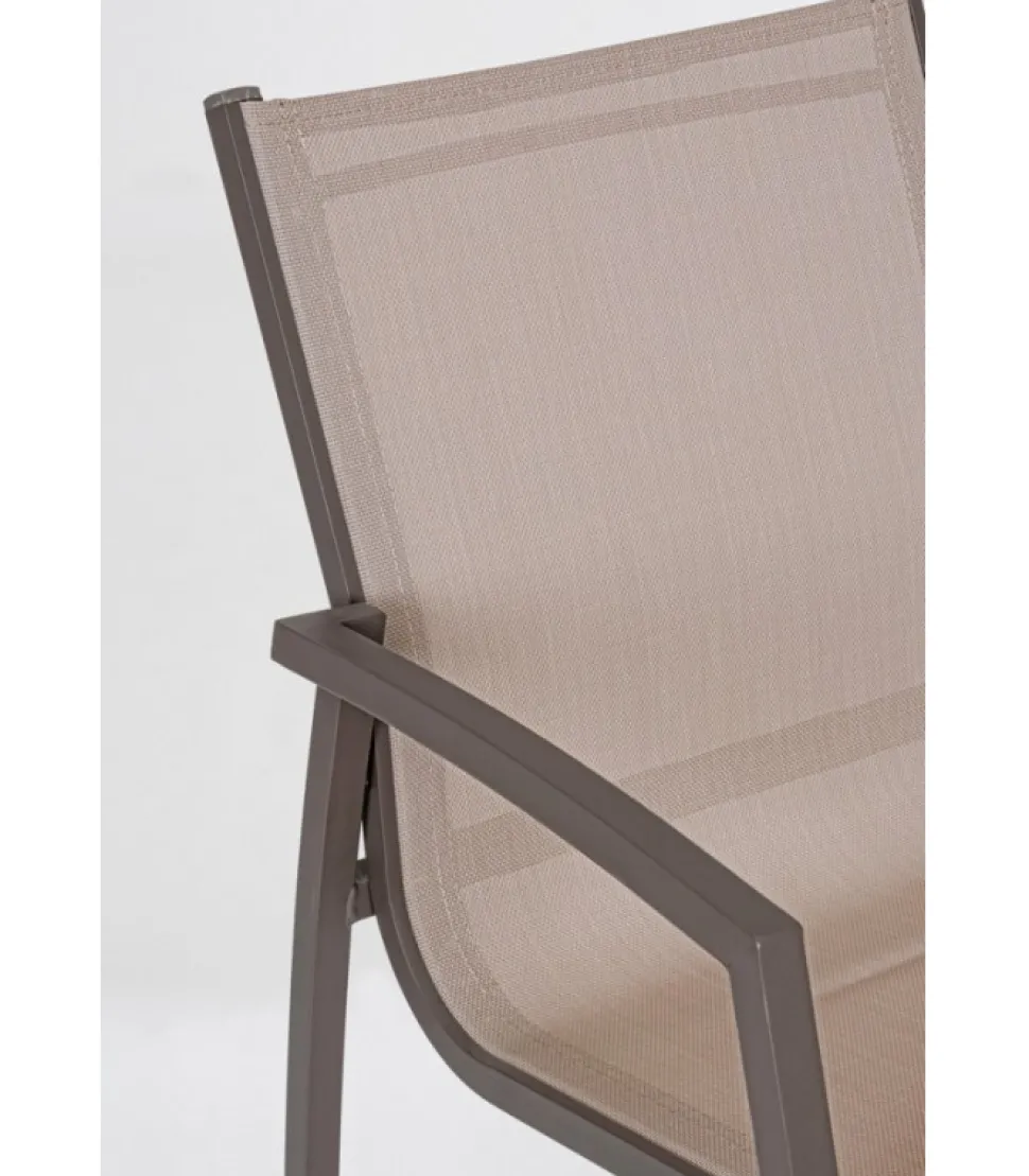 Sedia C-Br Hilla Coffee Yk14 Struttura In Alluminio, Verniciato A Polvere (Poliestere). Seduta E Schienale In Textilene 2X1. Impilabile. – Dimensioni In Cm. 56.5 (L.) 61 (P.) 87 ( H.) 46.5 ( H1) – 66 ( H2)