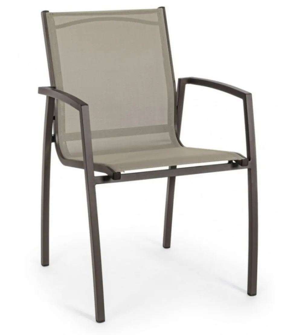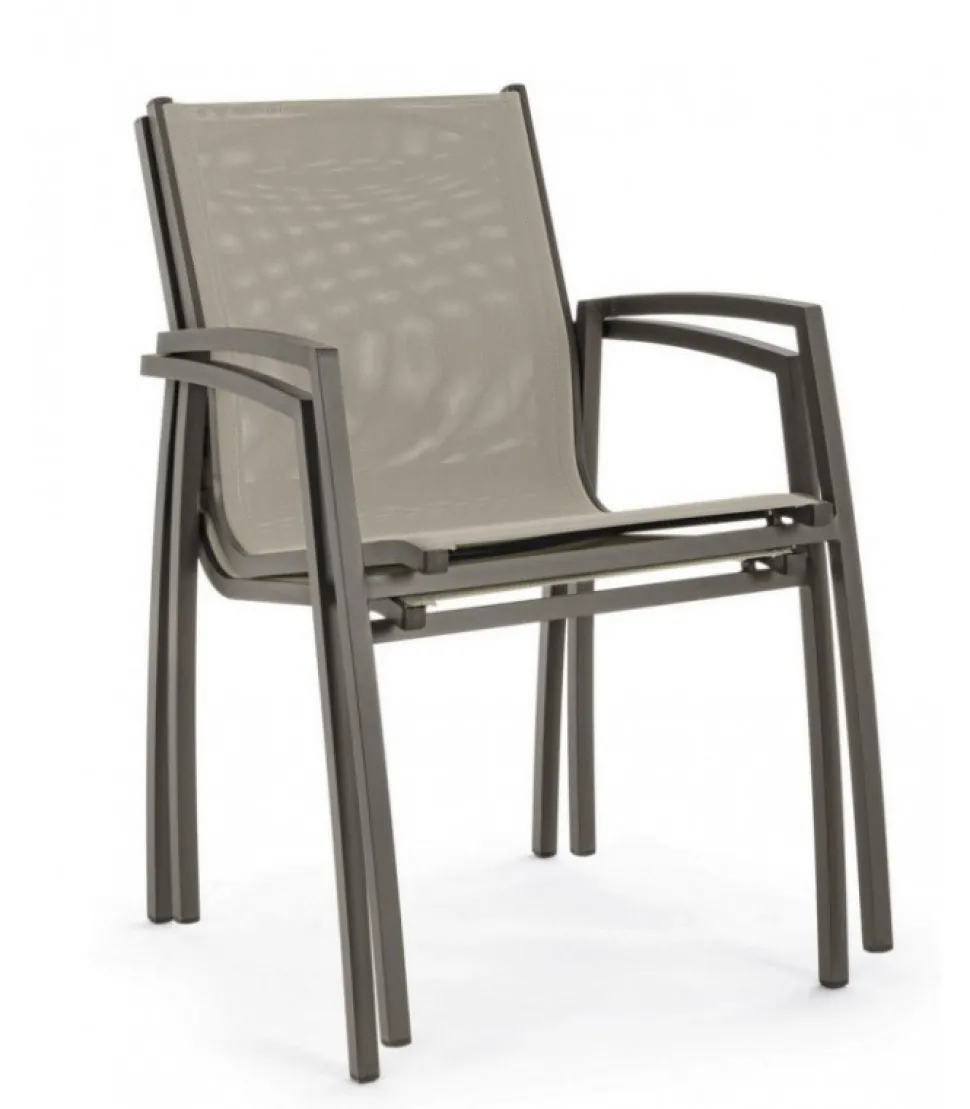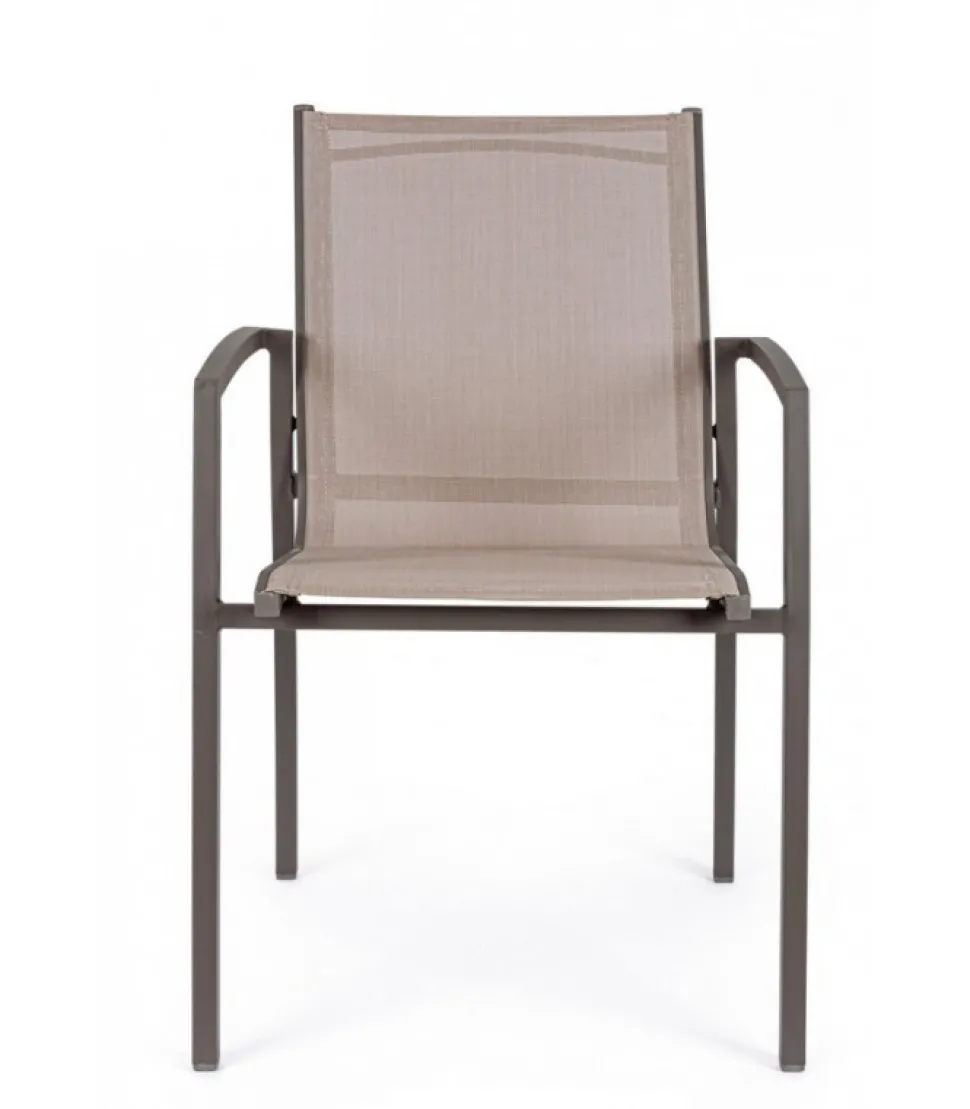 Sedia C-Br Hilla Coffee Yk14 Struttura In Alluminio, Verniciato A Polvere (Poliestere). Seduta E Schienale In Textilene 2X1. Impilabile. – Dimensioni In Cm. 56.5 (L.) 61 (P.) 87 ( H.) 46.5 ( H1) – 66 ( H2)