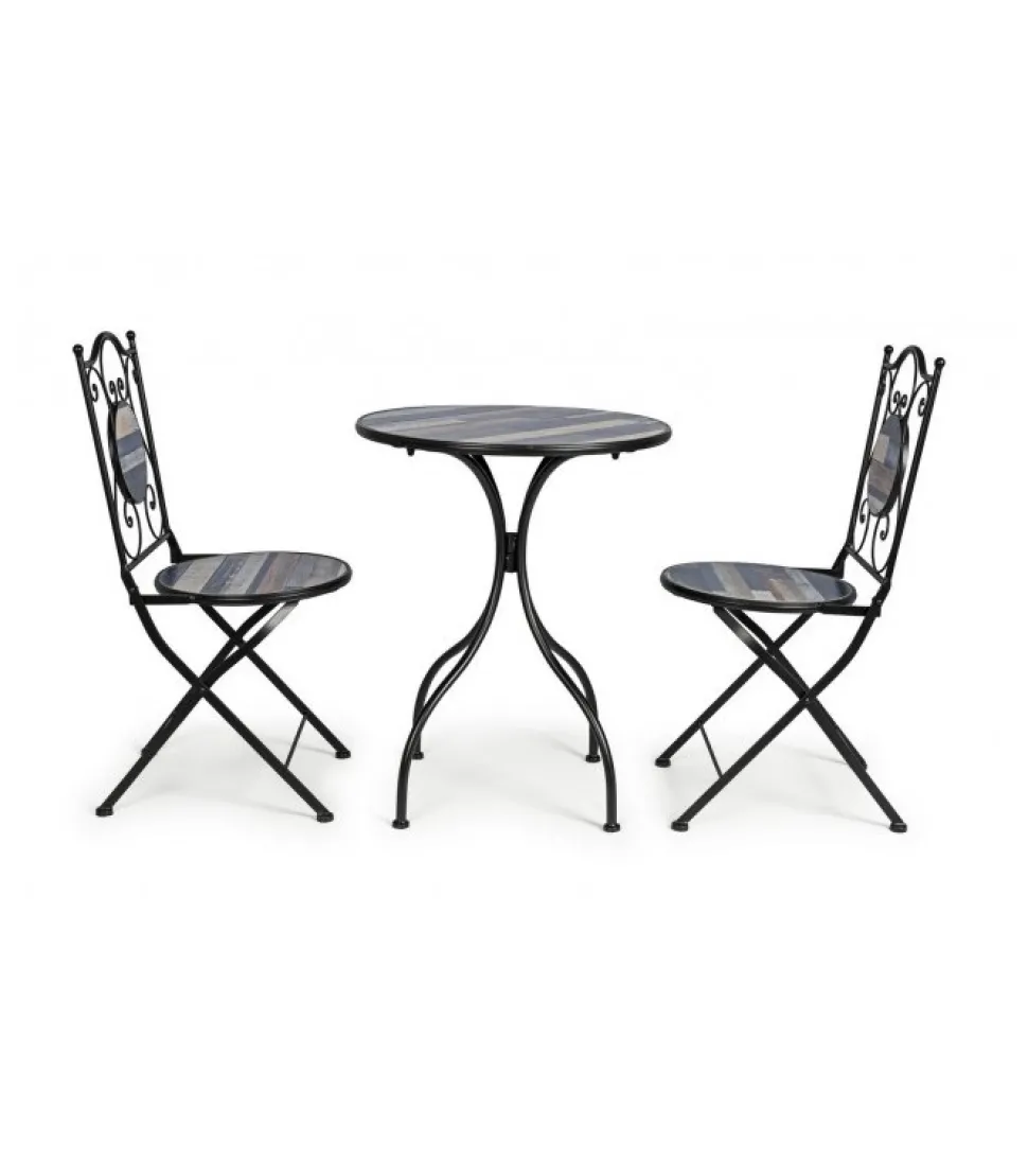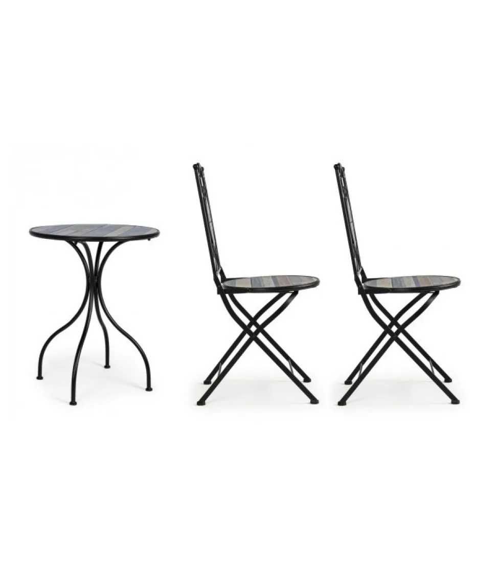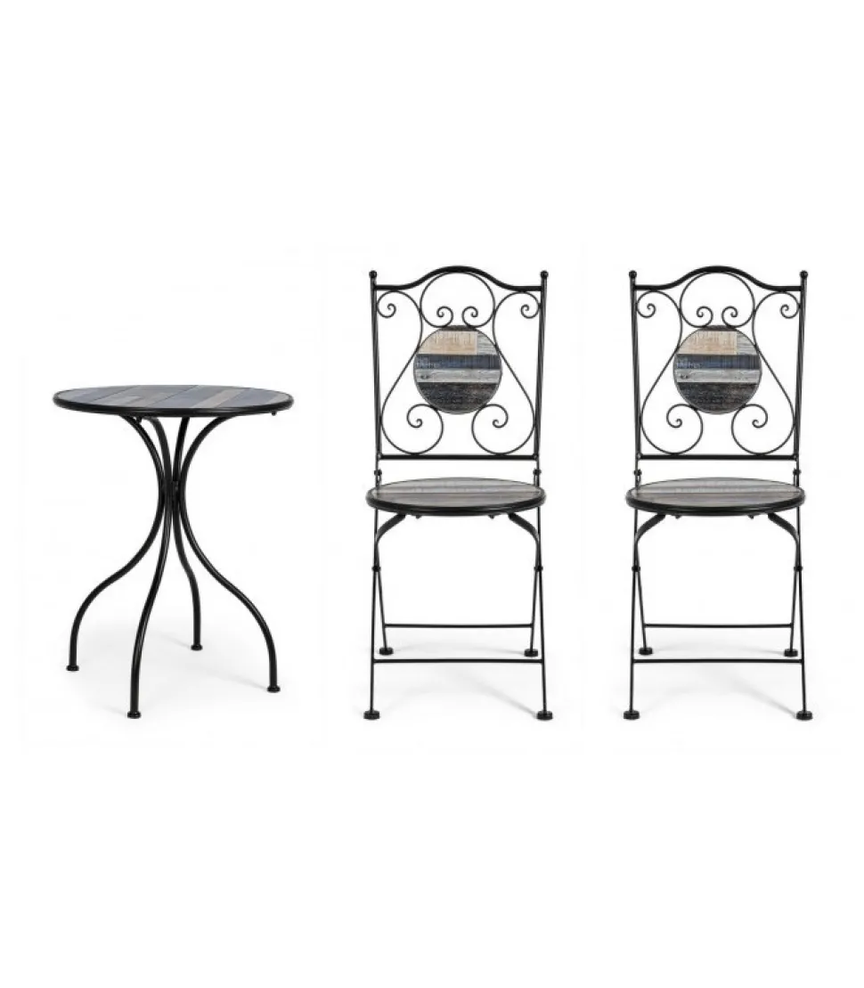 Set3 Tavolo+2Sedie Piegh Huston Struttura In Acciaio Trattato Per L’Esterno (E-Coating) E Verniciato A Polvere Epossidica. Piano, Seduta E Decori In Ceramica. Sedia Pieghevole. Tavolo Gambe Da Assemblare. – Dimensioni In Cm. A: 38 (L.) 38 (P.) 92 ( H.) 46 ( H1); C: O60 (L.) 75 H