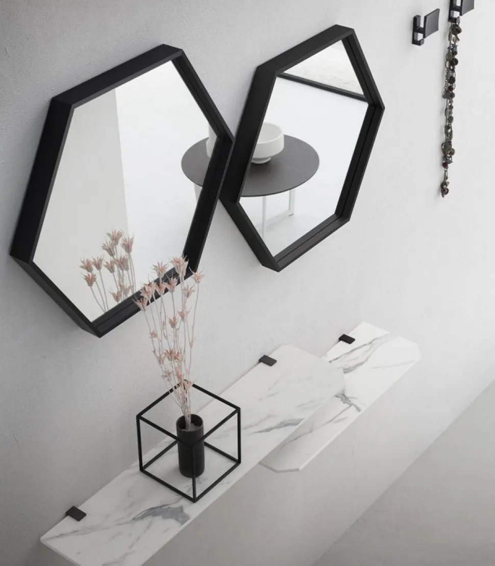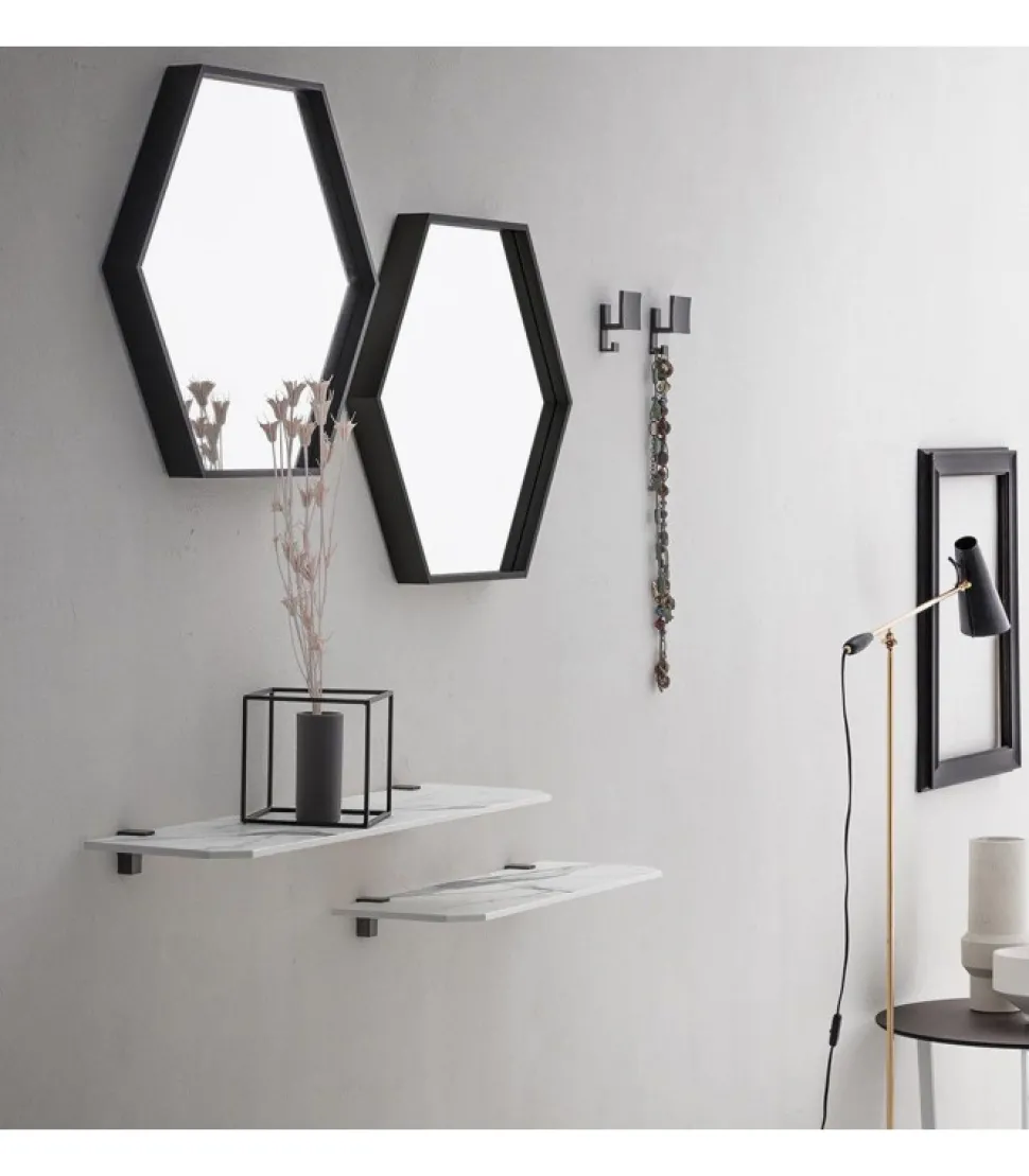 Specchiere Con Telaio Alluminio A Forma Esagonale O Specchi Lisci Con Forma Rotonda.