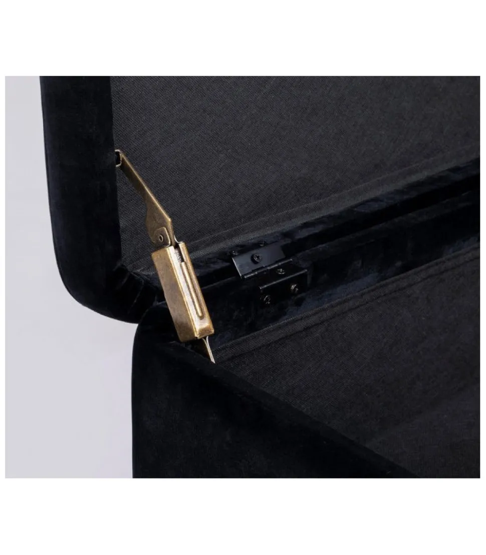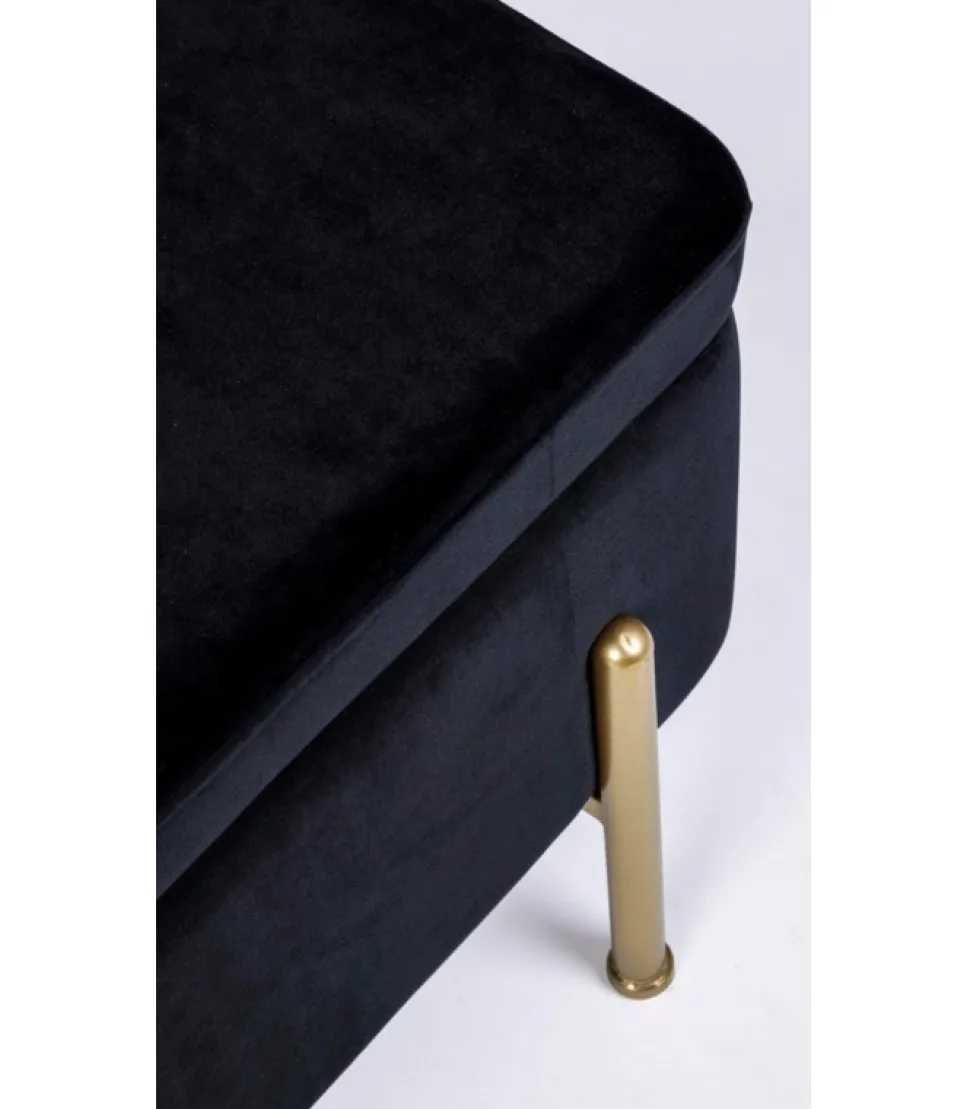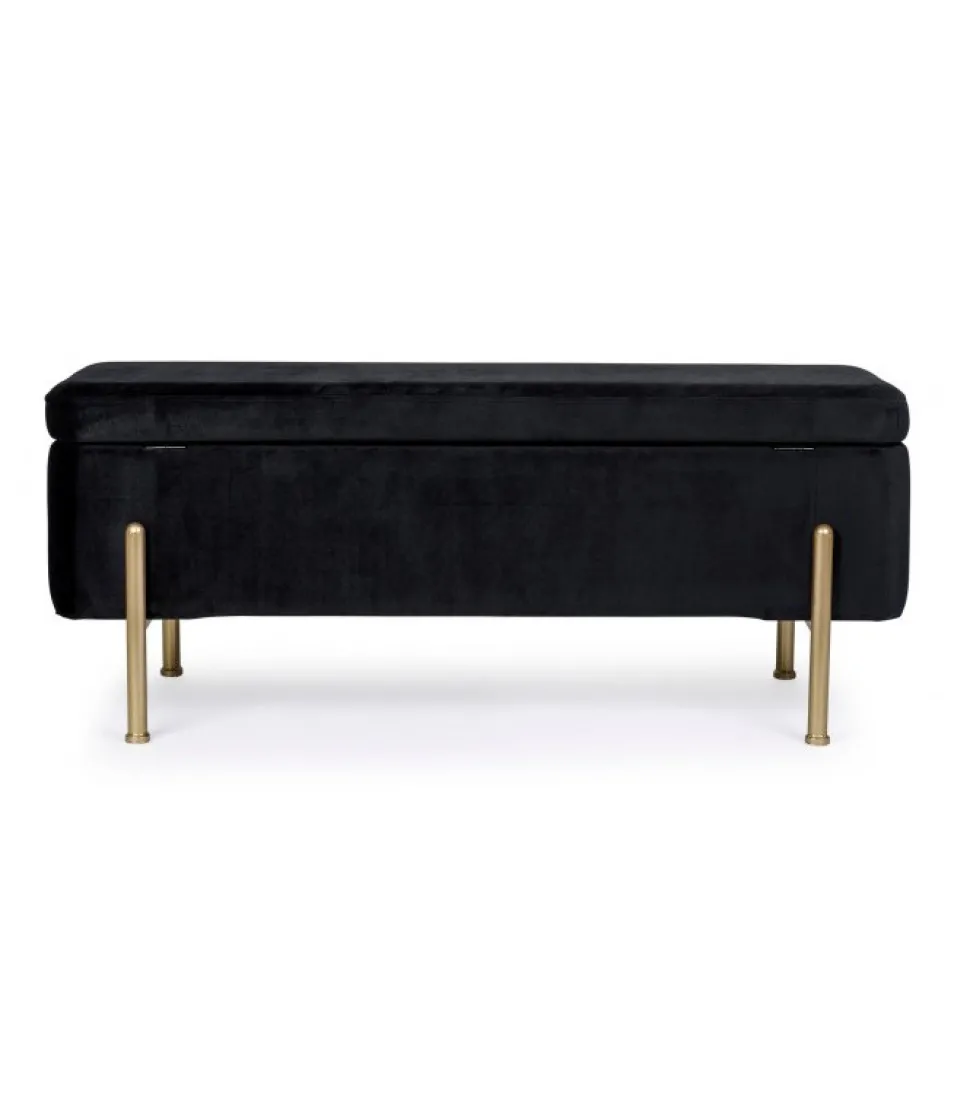 Panca 2P Contenitore Irina Nero Struttura In Mdf E Compensato. Gambe In Acciaio Verniciato Color Oro. Rivestimento In Poliestere Effetto Velluto. Gambe Da Assemblare. – Dimensioni In Cm. 110 (L.) 42 (P.) 42 H