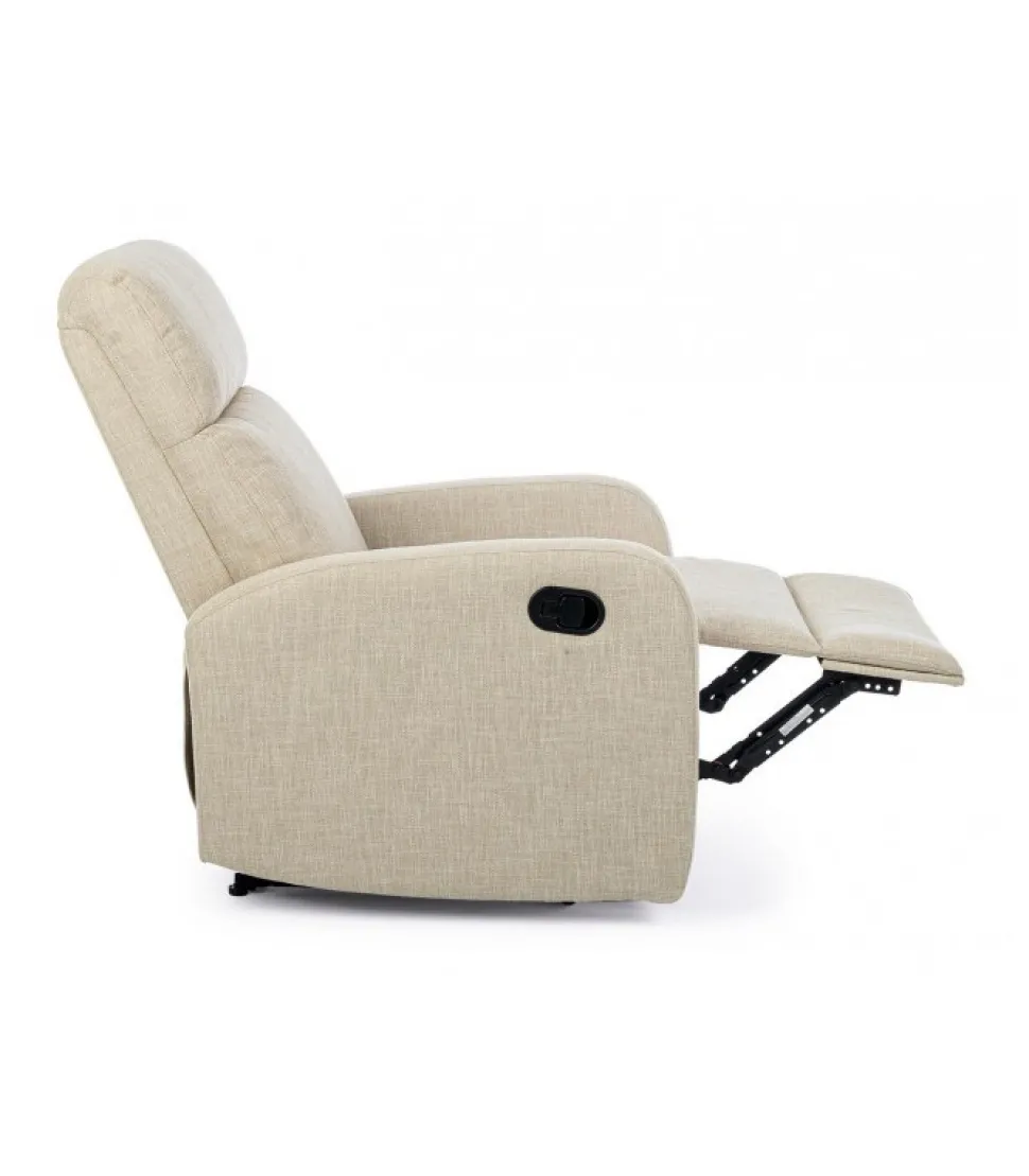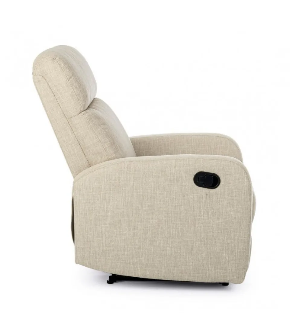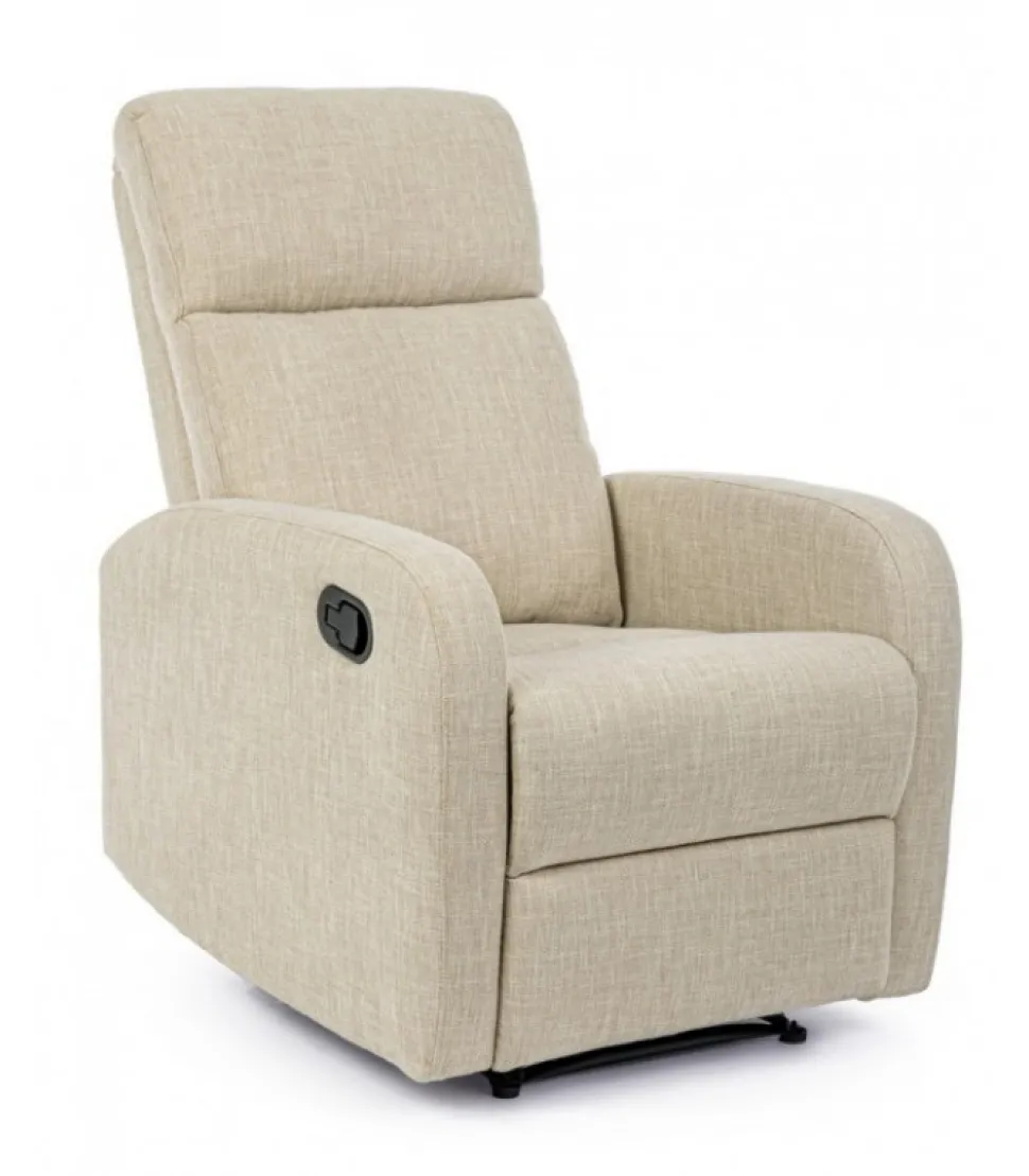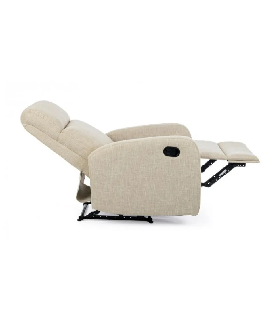 Poltrona Recl Manuale Iris Text Beige Struttura In Acciaio E Compensato. Imbottitura In Fibra Di Poliestere 9 Kg/M3. Seduta E Schienale Rivestiti In Tessuto Poliestere. Sistema Di Reclinazione Manuale. Da Assemblare. – Dimensioni In Cm. 67,5 (L.) 90,5/140 (P.) 98 ( H.) 45,5 ( H1) – 61,5 ( H2)