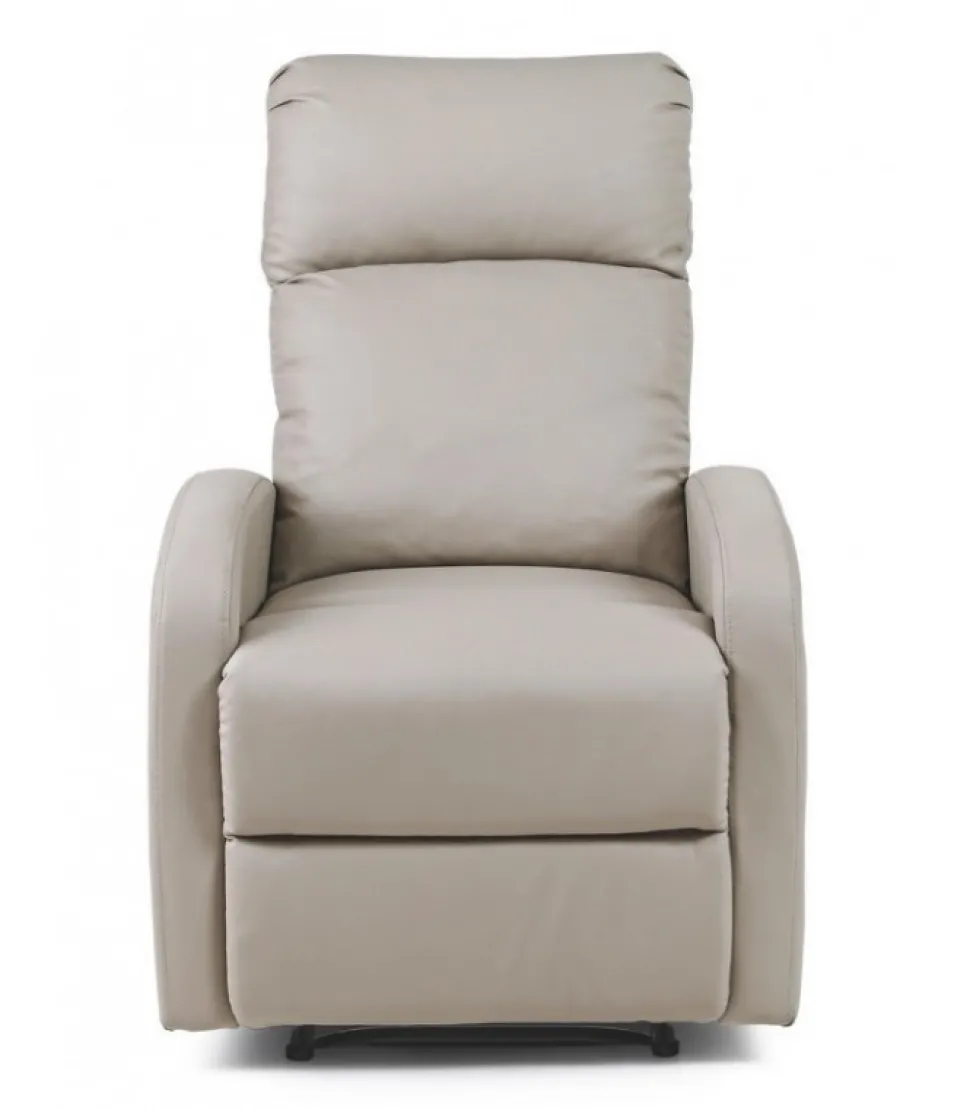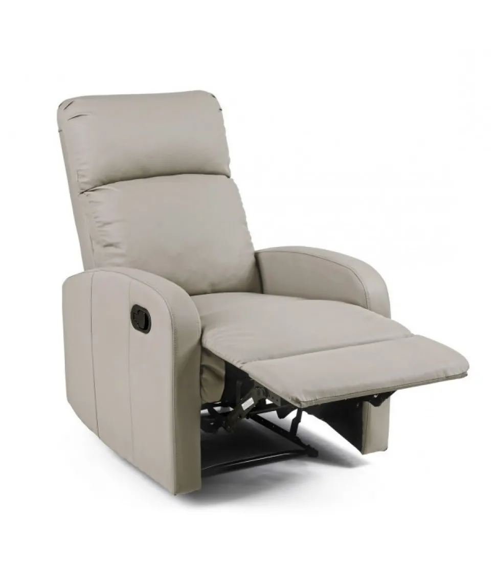 Poltrona Recl Manuale Iris Pu Tortora Struttura In Acciaio E Compensato. Imbottitura In Fibra Di Poliestere 9 Kg/M3. Seduta E Schienale Rivestiti In Similpelle. Sistema Di Reclinazione Manuale. Da Assemblare. – Dimensioni In Cm. 67,5 (L.) 90,5/140 (P.) 98 ( H.) 45,5 ( H1) – 61,5 ( H2)
