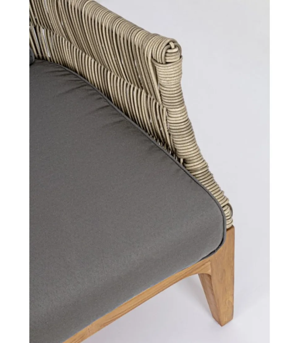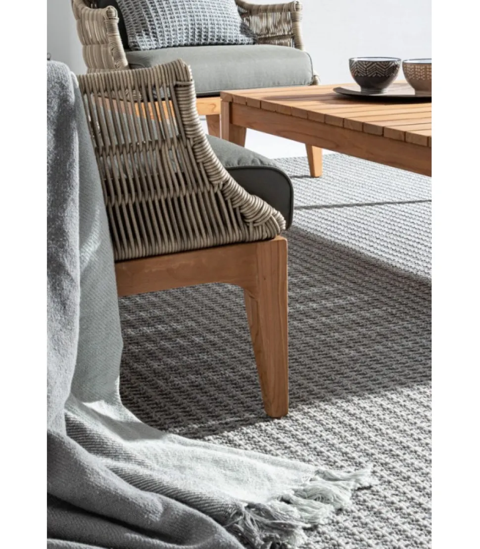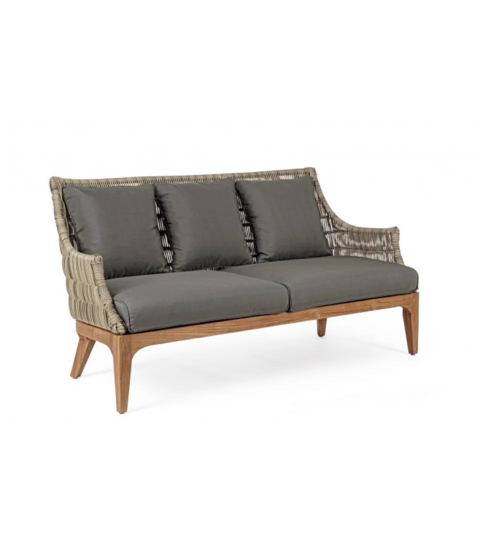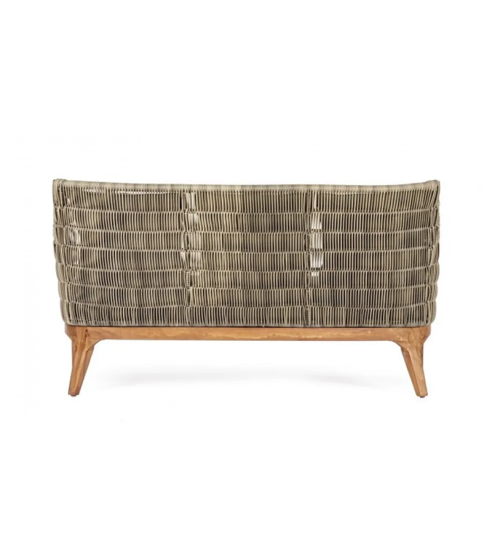Divano 2-3P C-C Keilani Struttura Schienale In Alluminio Verniciato A Polvere (Poliestere). Seduta E Gambe In Teak – Svlk (Legno Certificato Proveniente Da Foreste Sostenibili). Intreccio Per Esterno In Fibra Sintetica Tonda 5Mm. Cuscini Sfoderabili Con Tessuto Sunproof Olefin (100% Polipropilene). Imbottitura Per Esterno Quick Dry Foam (Antiumidita’). – Dimensioni In Cm. 153 (L.) 73 (P.) 80.5 ( H.) 42 ( H1) – 60 ( H2)
