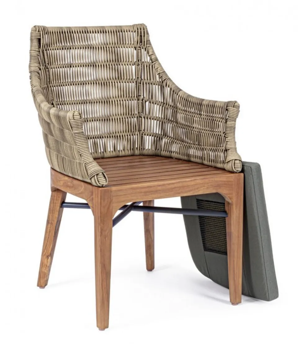 Sedia C-C Keilani Struttura Schienale In Alluminio Verniciato A Polvere (Poliestere). Seduta E Gambe In Teak – Svlk (Legno Certificato Proveniente Da Foreste Sostenibili). Intreccio Per Esterno In Fibra Sintetica Tonda 5Mm. Cuscino Sfoderabili Con Tessuto Sunproof Olefin (100% Polipropilene). Imbottitura Per Esterno Quick Dry Foam (Antiumidita’). – Dimensioni In Cm. 60 (L.) 58.5 (P.) 85 ( H.) 47 ( H1) – 63.5 ( H2)