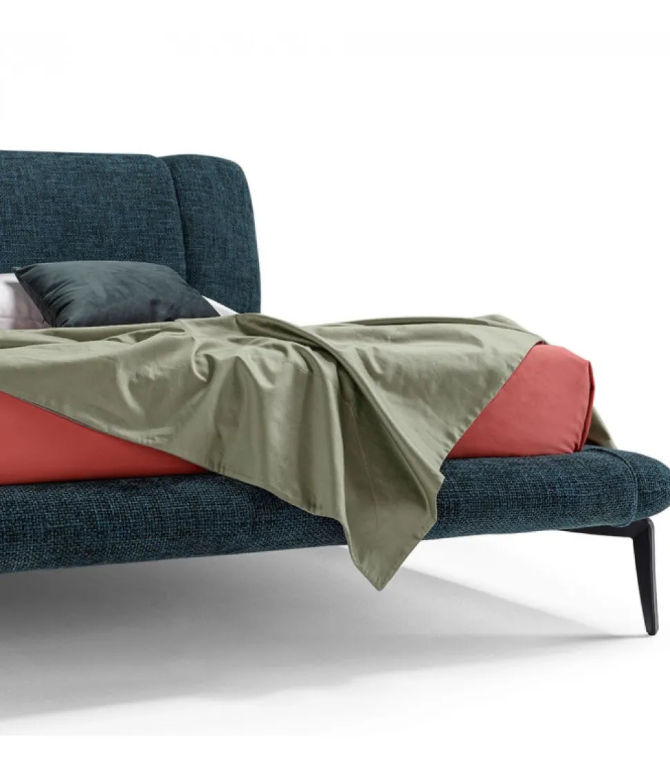 Il Letto Imbottito Cedric Vanta Un Giroletto Molto Sottile Senza Rinunciare Al Comfort E Alla Morbidezza. Nell’Allestimento Suggerito, E Sorretto Da Piedi In Metallo, Che Esaltano Il Design Organico E Fluente. La Soffice Testata Con Profilo Curvo E Caratterizzata Anche Da Due Trapuntature Verticali Che Identificano Lo Spazio Dedicato Al Riposo. Il Letto Include Una Rete A 14 Doghe.